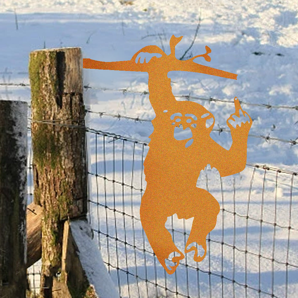 Funny Monkey Flipping Off Metal Sign - Peeking Animal Yard Art Decor