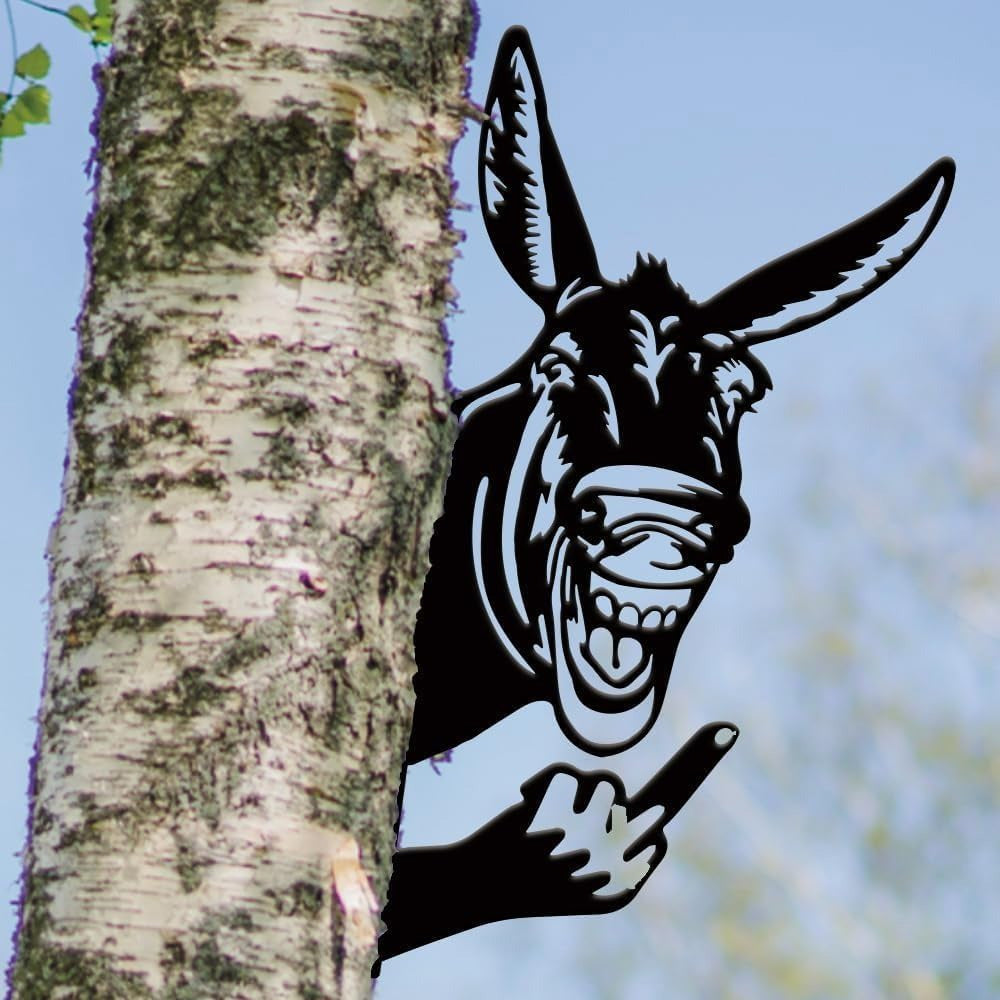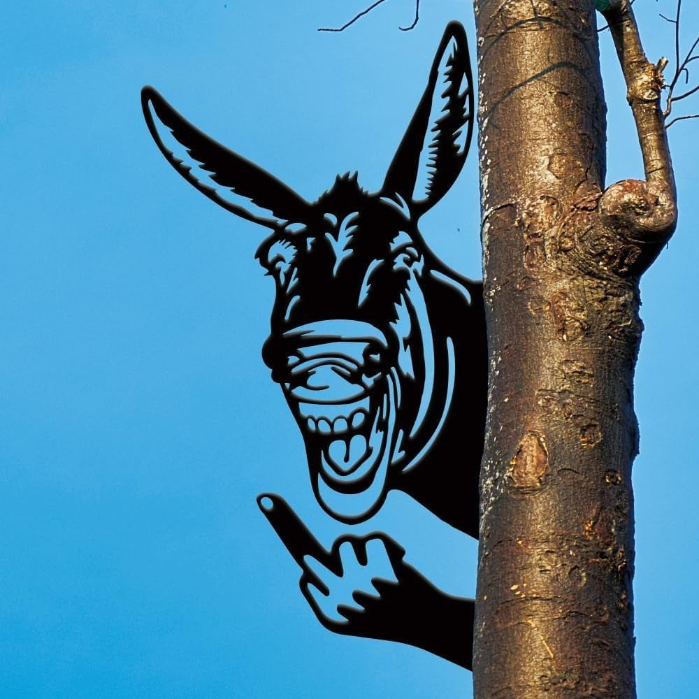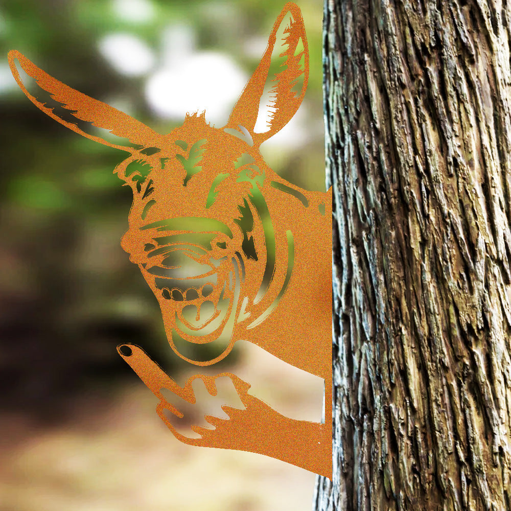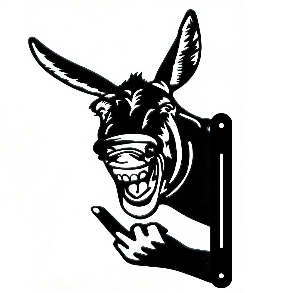 Funny Mule Flipping Off Metal Sign - Peeking Animal Yard Art Decor