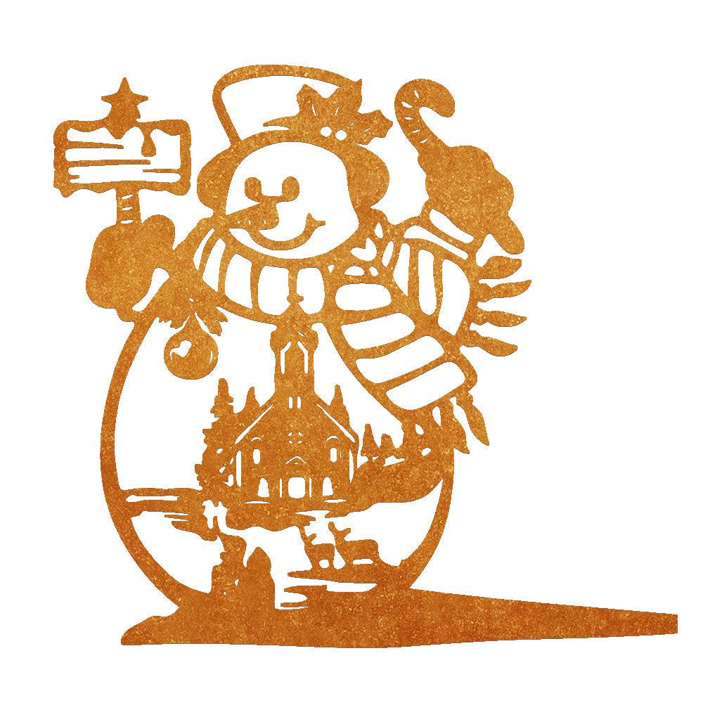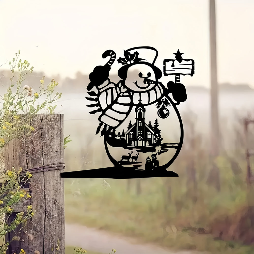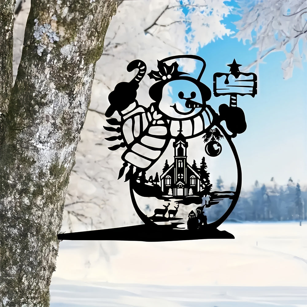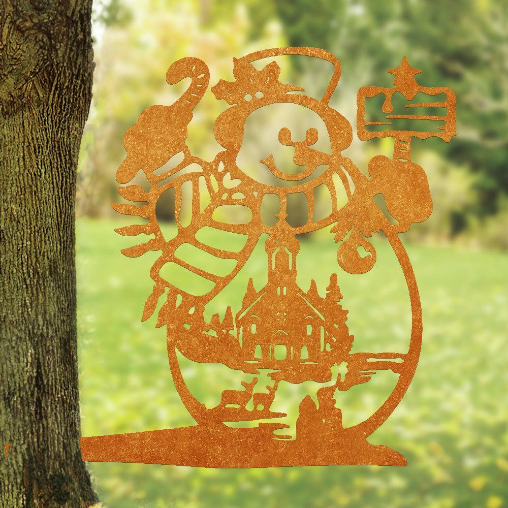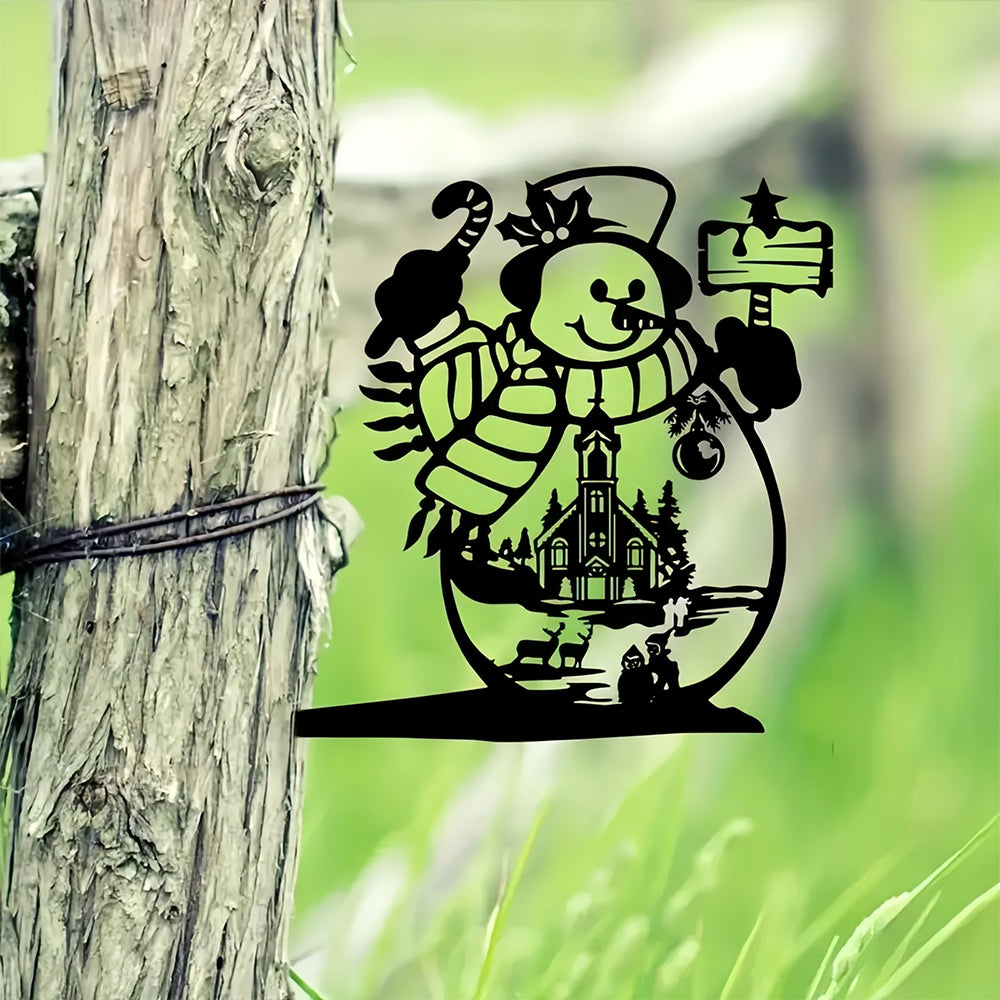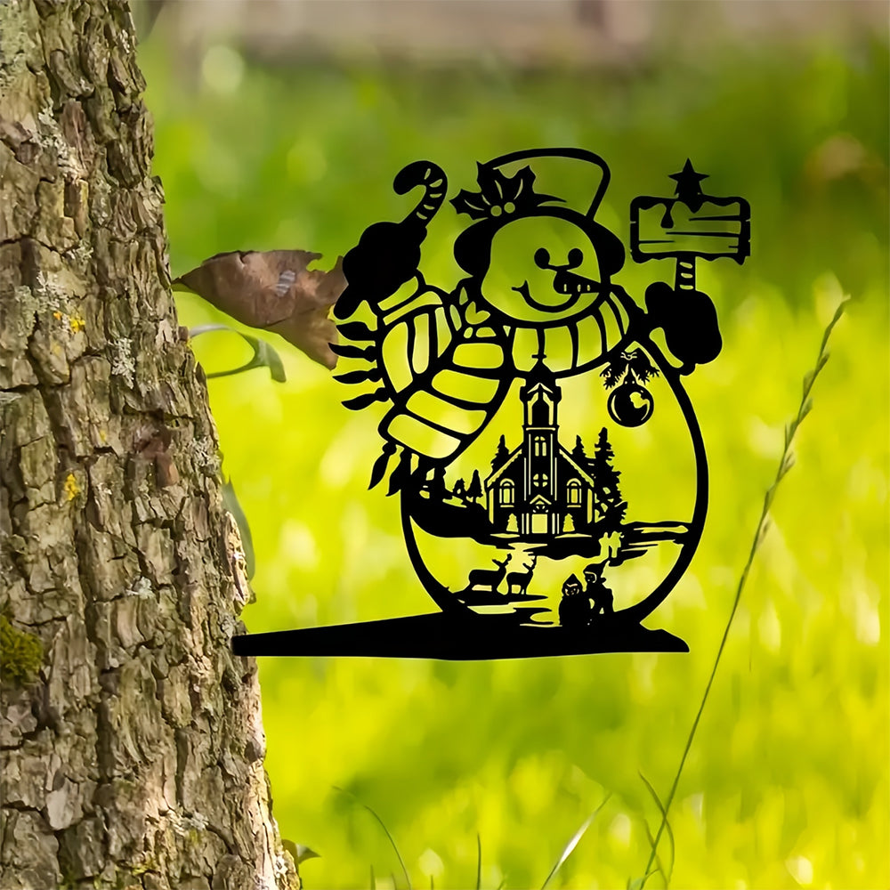 Snowman and Christmas Metal Tree Decorations Outdoor Metal Garden Art