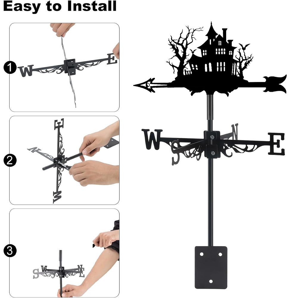 💕Creative design: This Weathervane is made of high-quality Stainless Steel. With stylish straight lines and satin black finishes. This anti-rust iron weather vane is decorated with exquisite patterns.