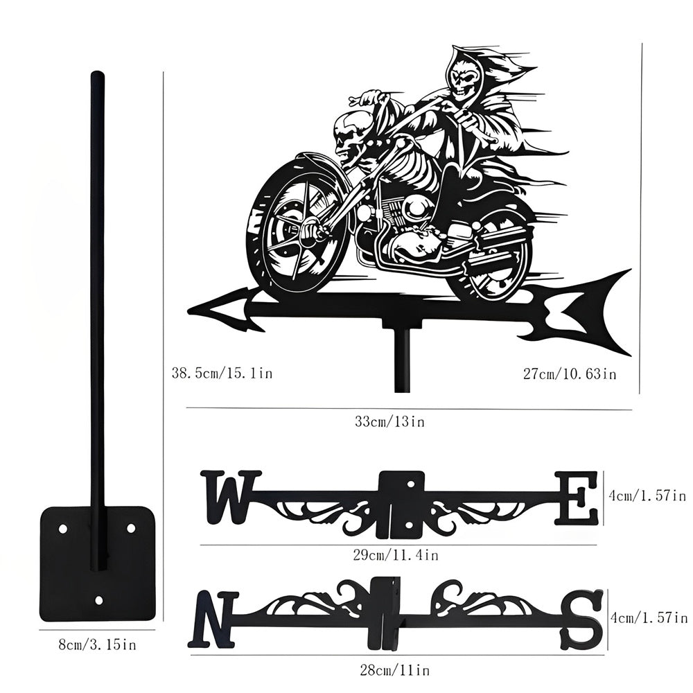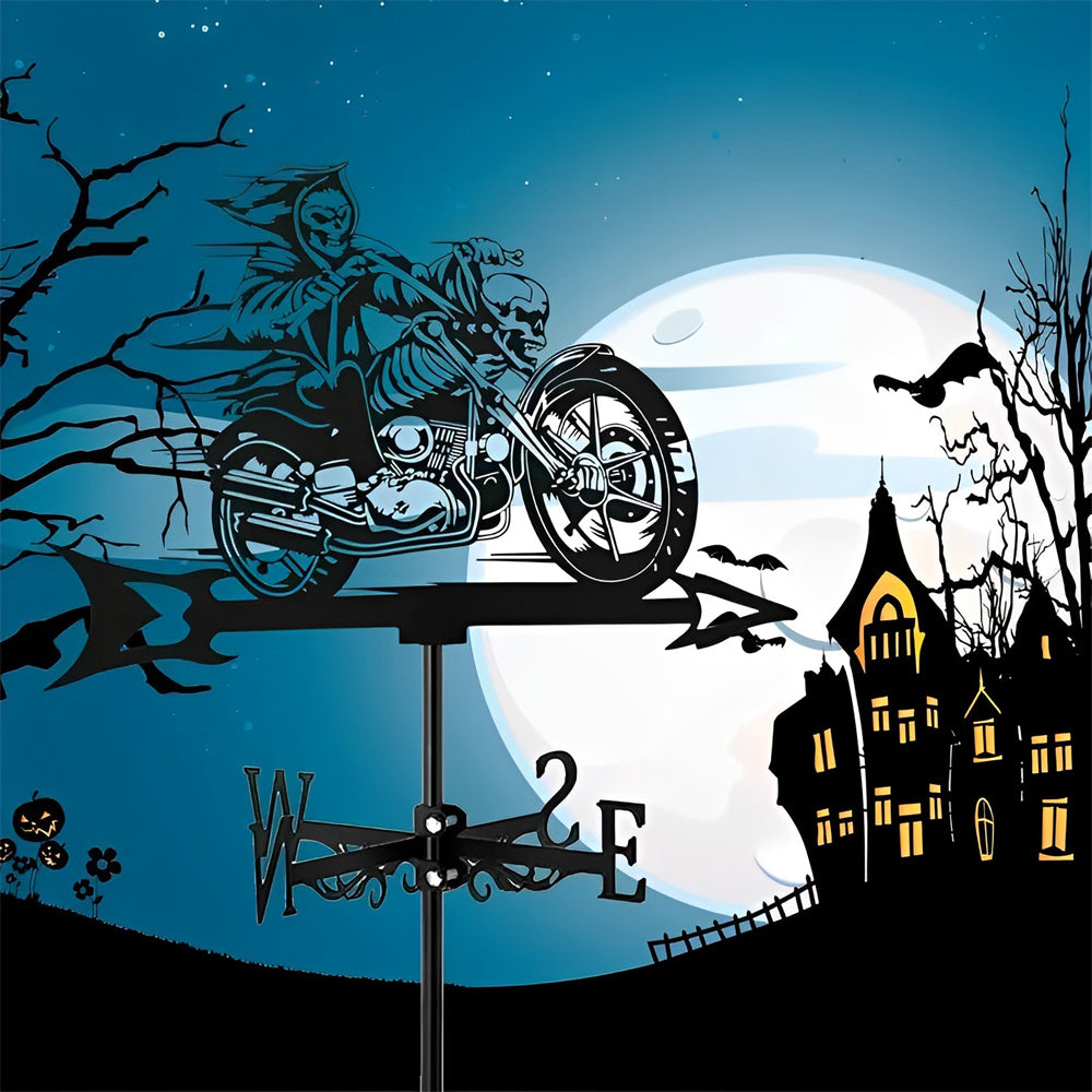 Halloween Skull Motorcycle Stainless Steel Weathervane