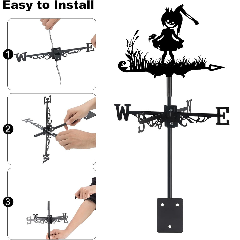 💕Creative design: This Weathervane is made of high-quality Stainless Steel. With stylish straight lines and satin black finishes. This anti-rust iron weather vane is decorated with exquisite patterns.