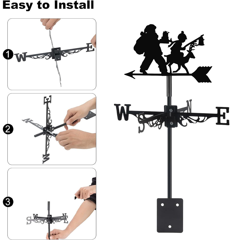 💕Creative design: This Weathervane is made of high-quality Stainless Steel. With stylish straight lines and satin black finishes. This anti-rust iron weather vane is decorated with exquisite patterns.
