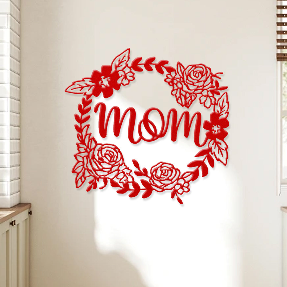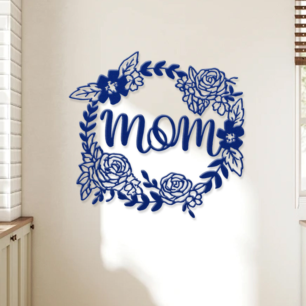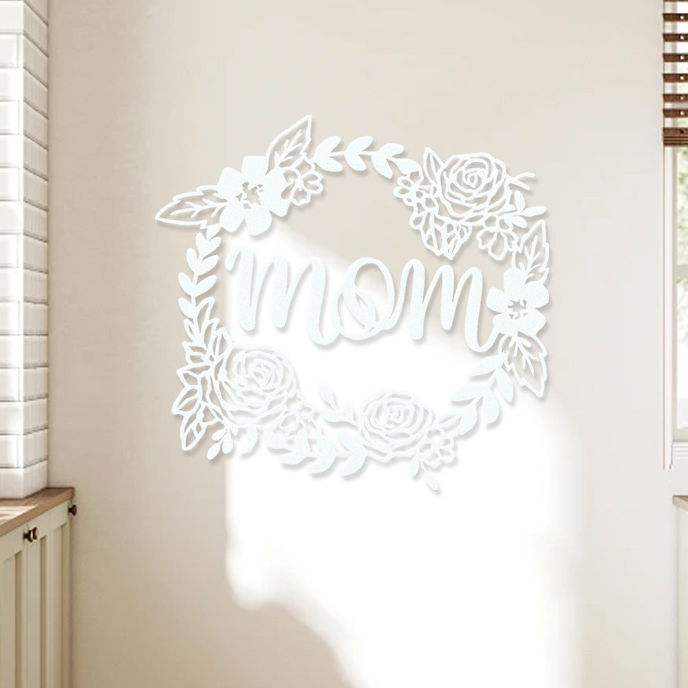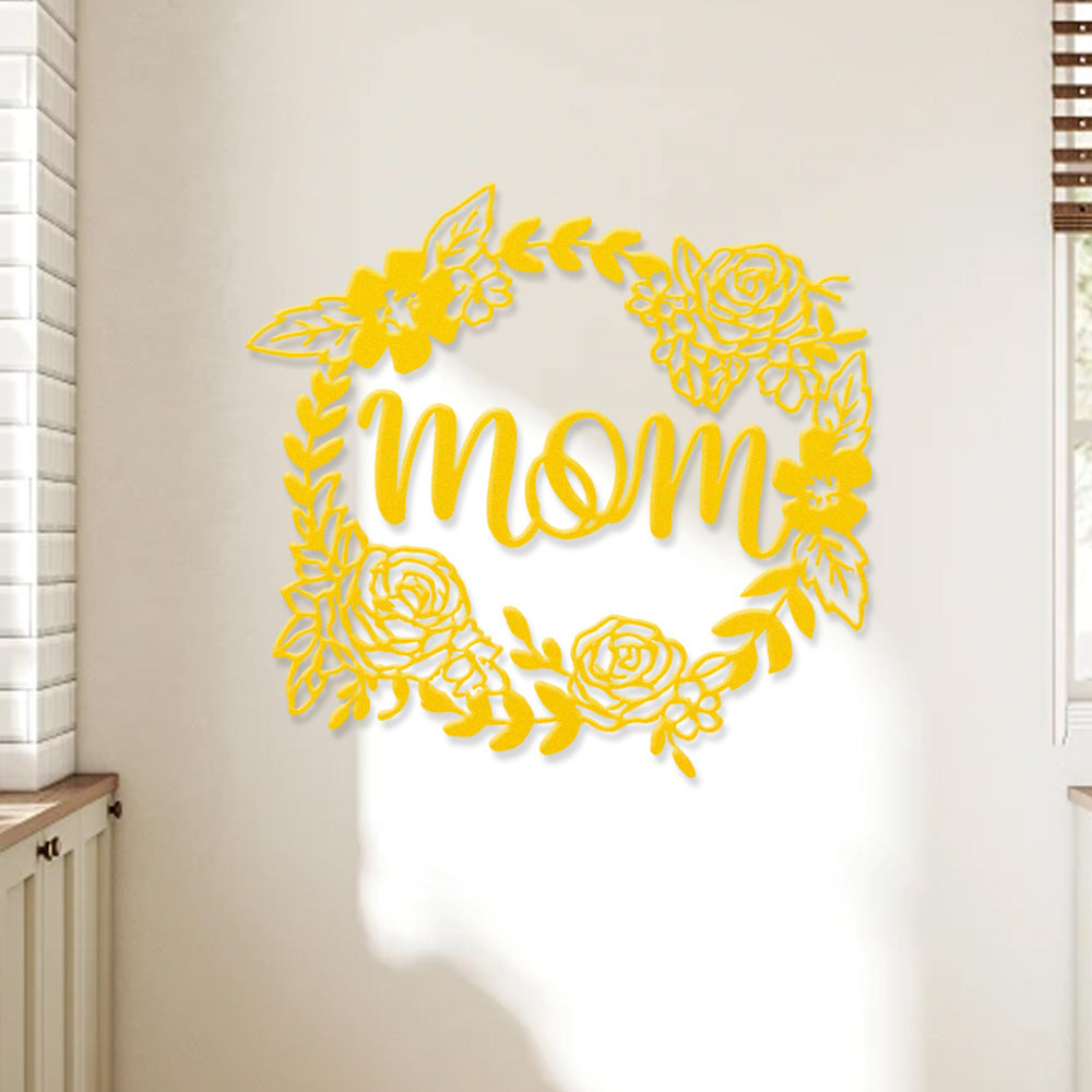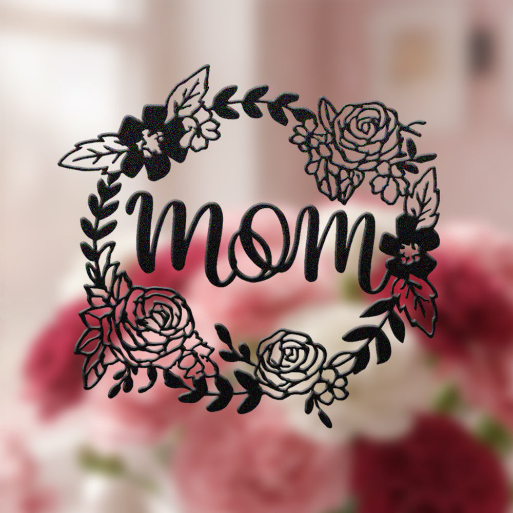 Floral Mom Wreath Metal Sign - Mother's Day Metal Sign Wall Art