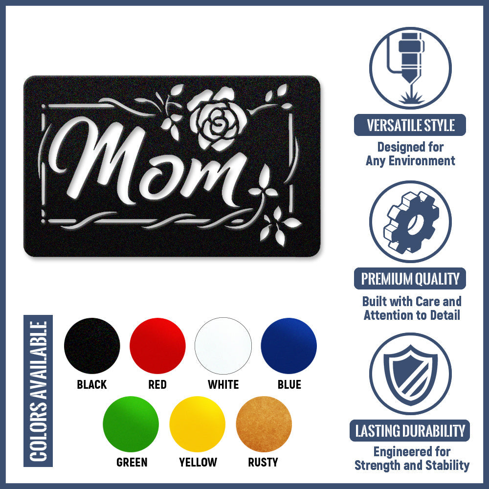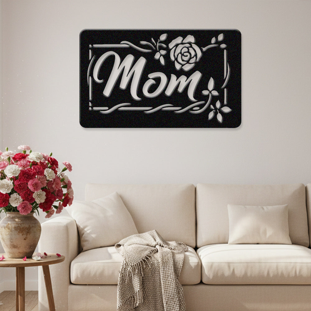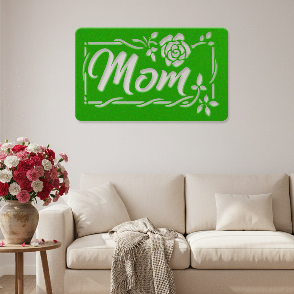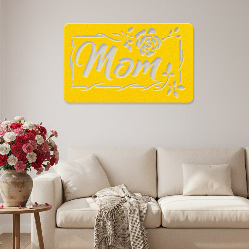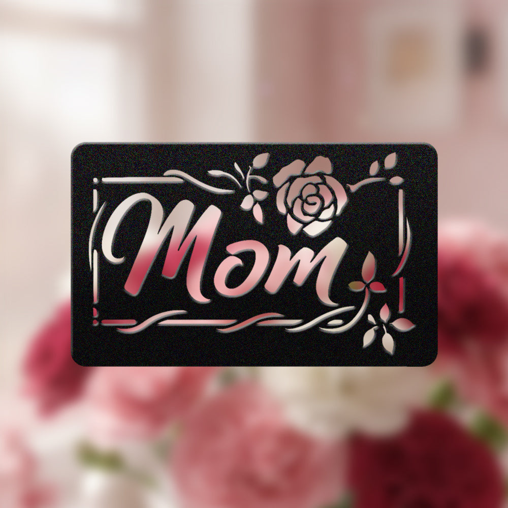 Mom Rose Floral Frame Metal Sign - Mother's Day Metal Sign Wall Art