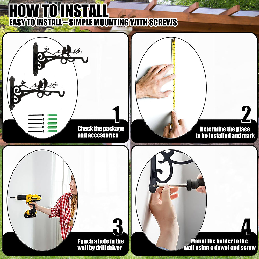 🔨Load-bearing Structure & rust-proof design: We use thickened iron plates material and a triangular fixed design to ensure that the plant hangers provides excellent support; The surface coating is anti-rust baking paint to ensure that the metal hanger has a long lasting life under all weather conditions.