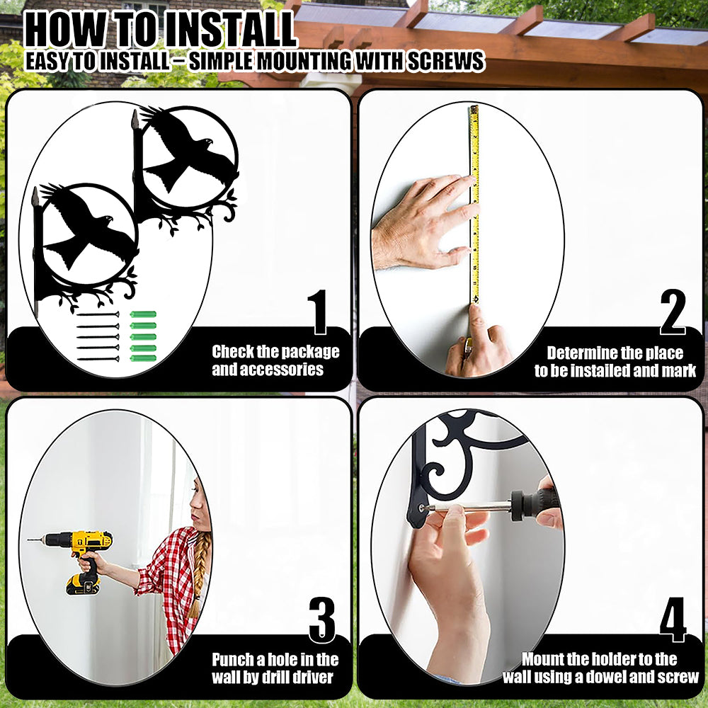 🔨Load-bearing Structure & rust-proof design: We use thickened iron plates material and a triangular fixed design to ensure that the plant hangers provides excellent support; The surface coating is anti-rust baking paint to ensure that the metal hanger has a long lasting life under all weather conditions.