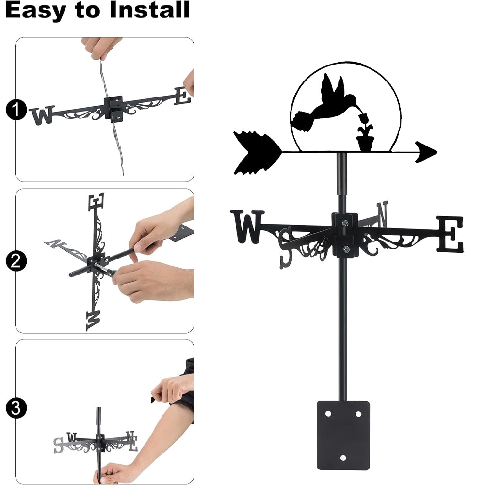 💕Creative design: This Weathervane is made of high-quality Stainless Steel. With stylish straight lines and satin black finishes. This anti-rust iron weather vane is decorated with exquisite patterns.