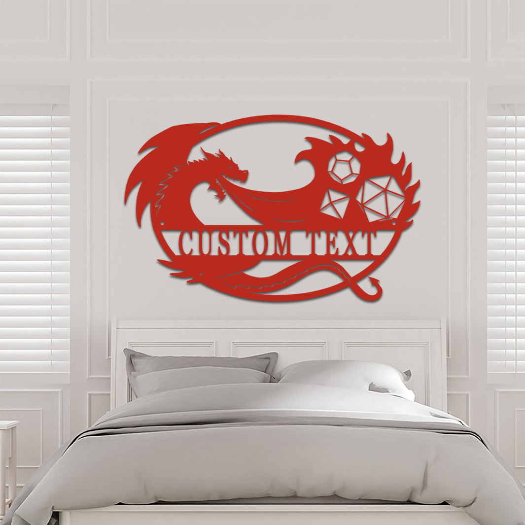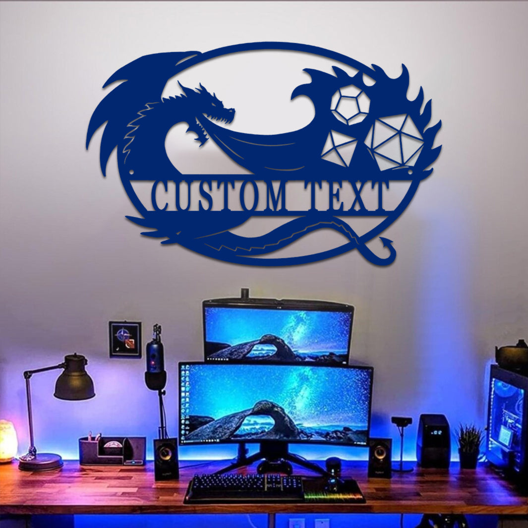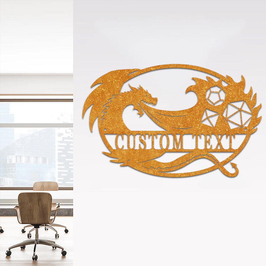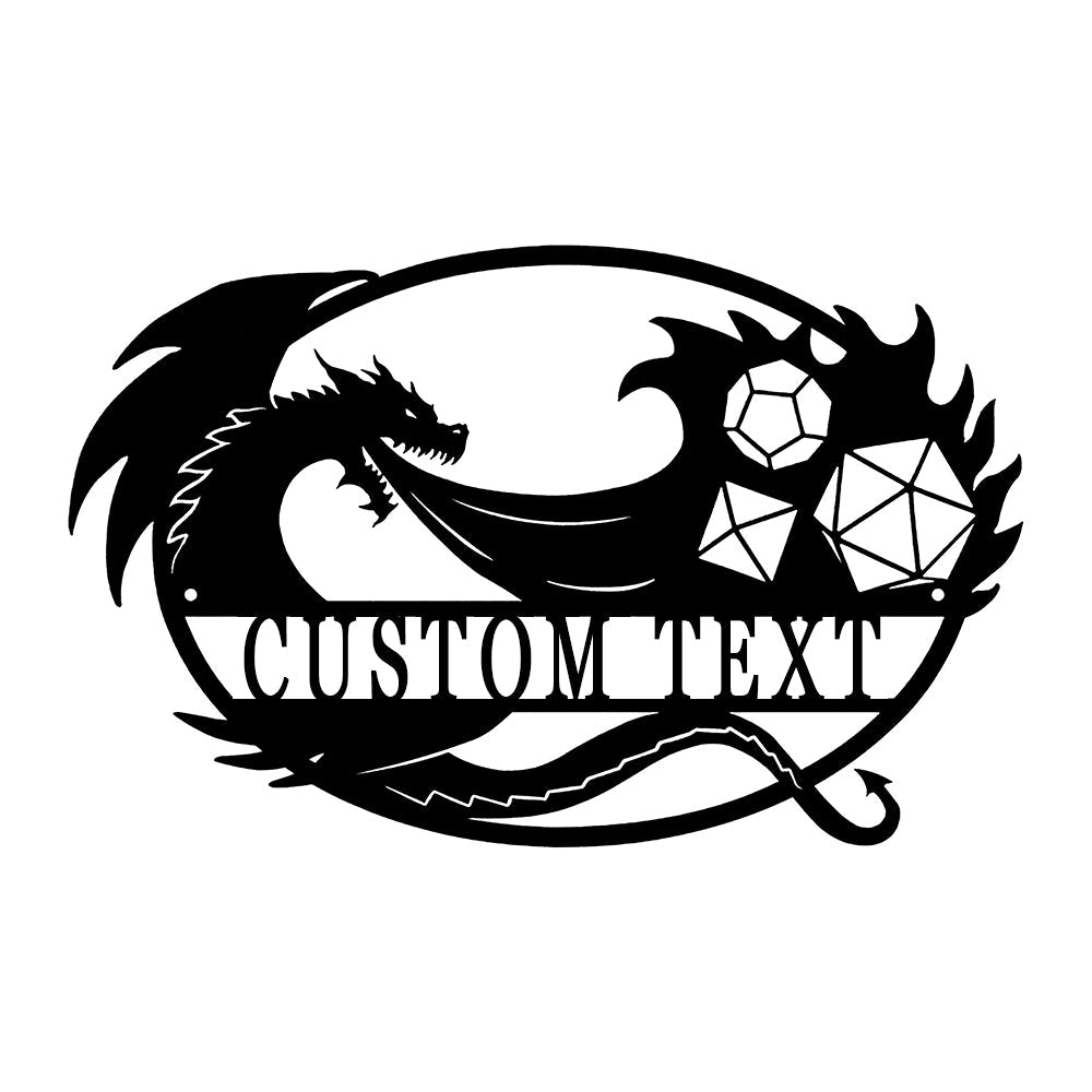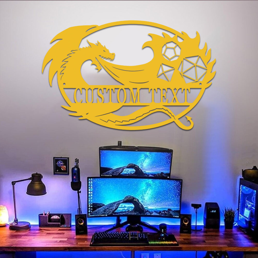 Custom Game Room Dragon & Dice Sign Metal Wall Art Decoration