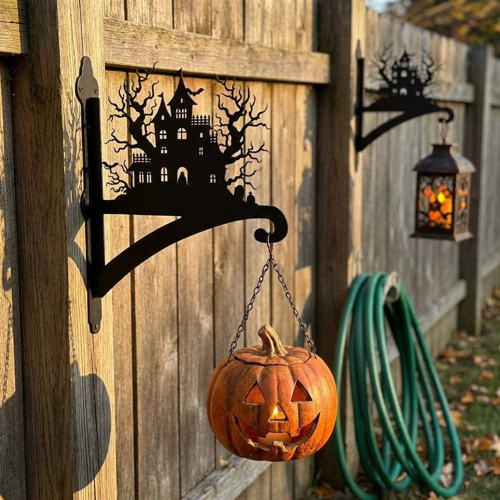 Halloween Castle Metal Hanging Bracket Plant Stand