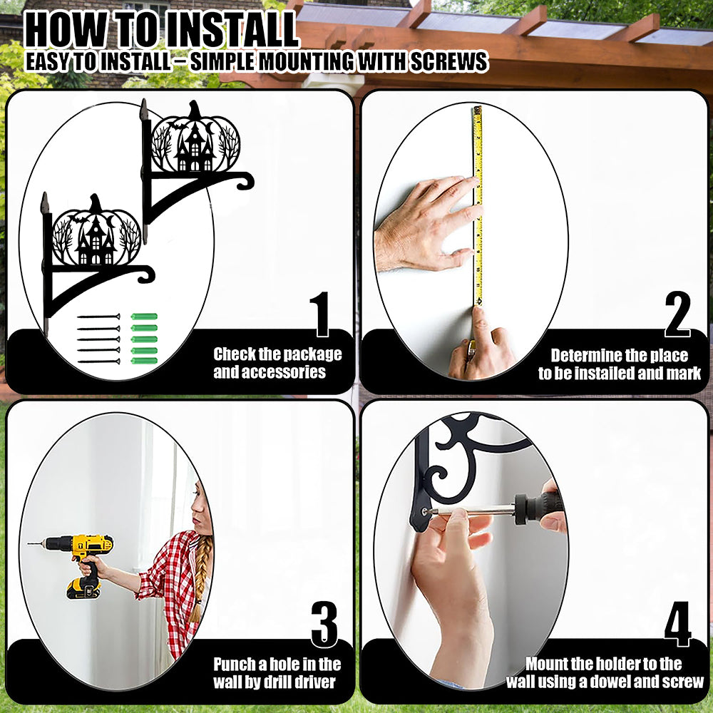 🔨Load-bearing Structure & rust-proof design: We use thickened iron plates material and a triangular fixed design to ensure that the plant hangers provides excellent support; The surface coating is anti-rust baking paint to ensure that the metal hanger has a long lasting life under all weather conditions.