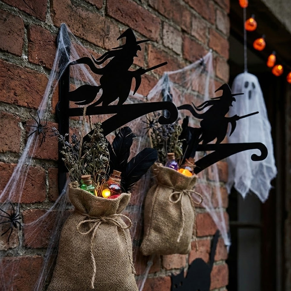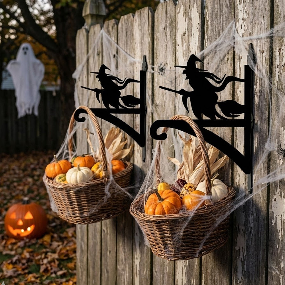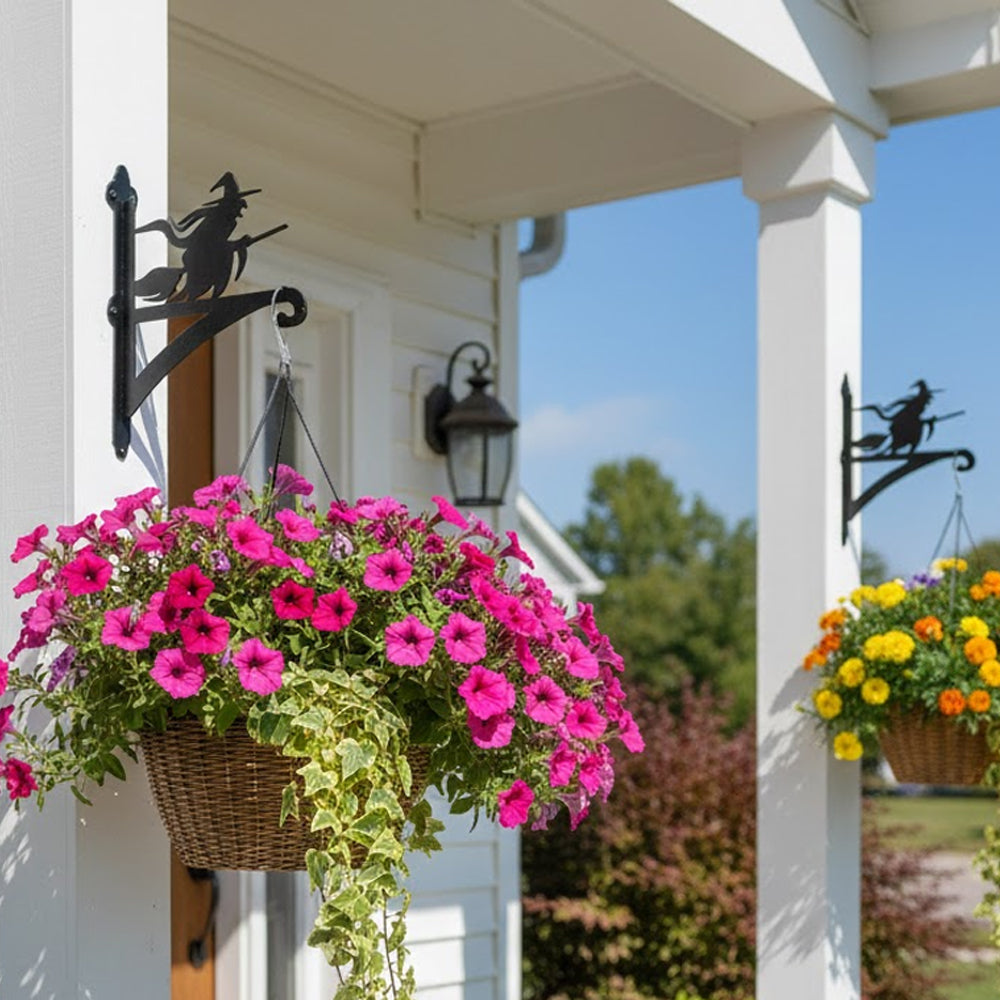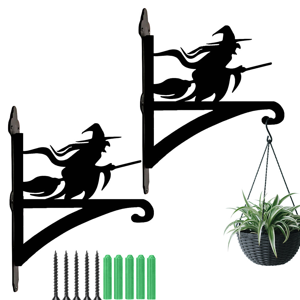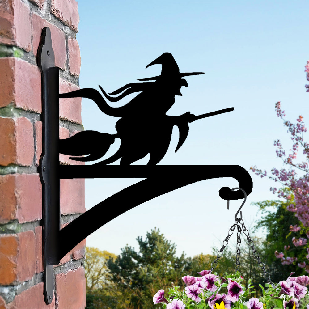 Witch on Broomstick Metal Hanging Bracket Plant Stand