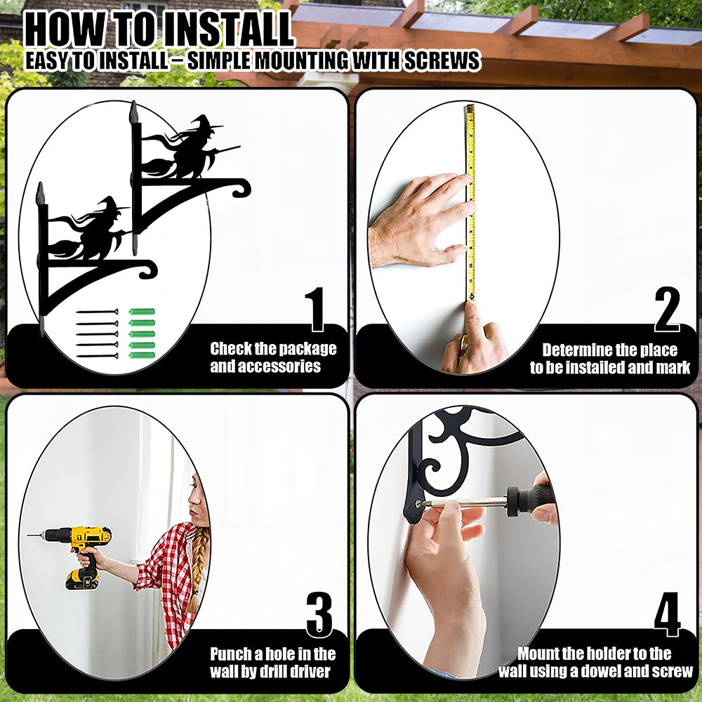 🔨Load-bearing Structure & rust-proof design: We use thickened iron plates material and a triangular fixed design to ensure that the plant hangers provides excellent support; The surface coating is anti-rust baking paint to ensure that the metal hanger has a long lasting life under all weather conditions.