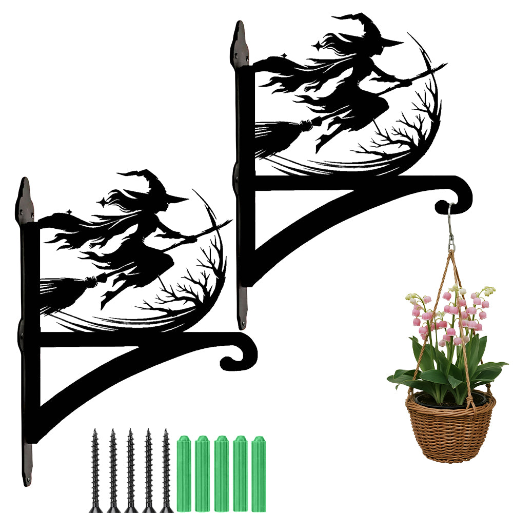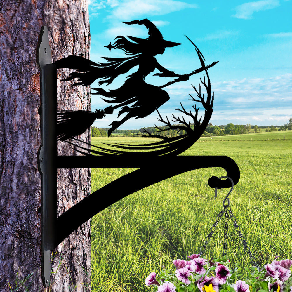 Witch on Broomstick Metal Hanging Bracket Plant Stand