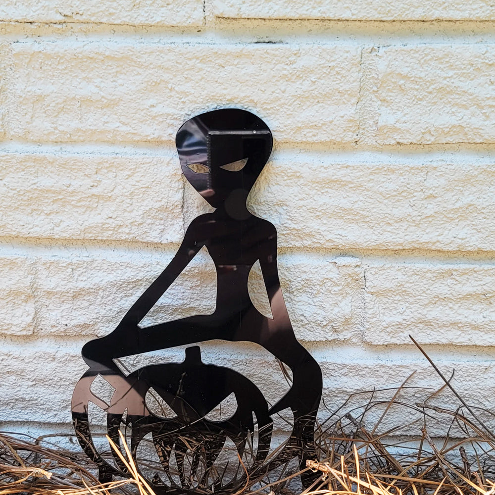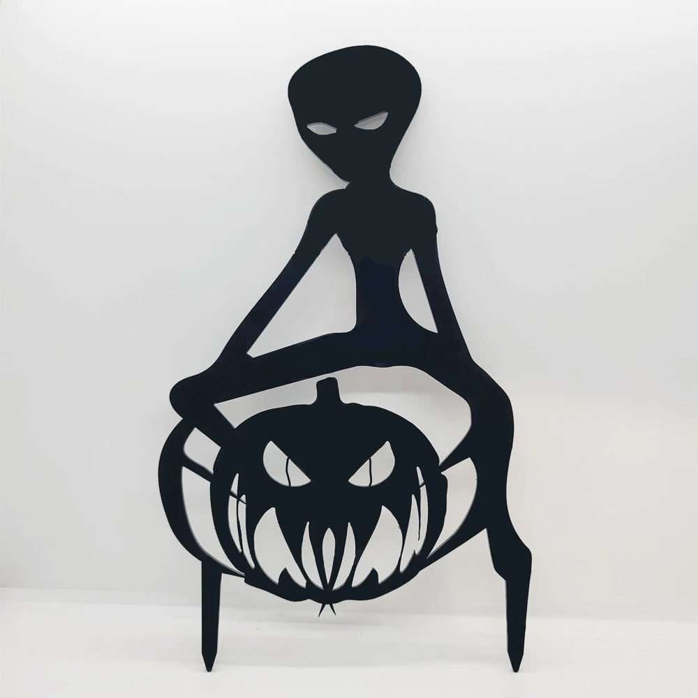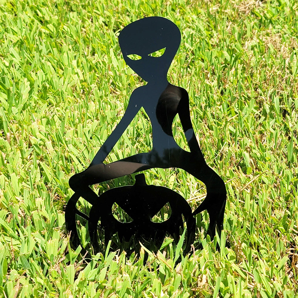 Alien Pumpkin Halloween Metal Yard Stake