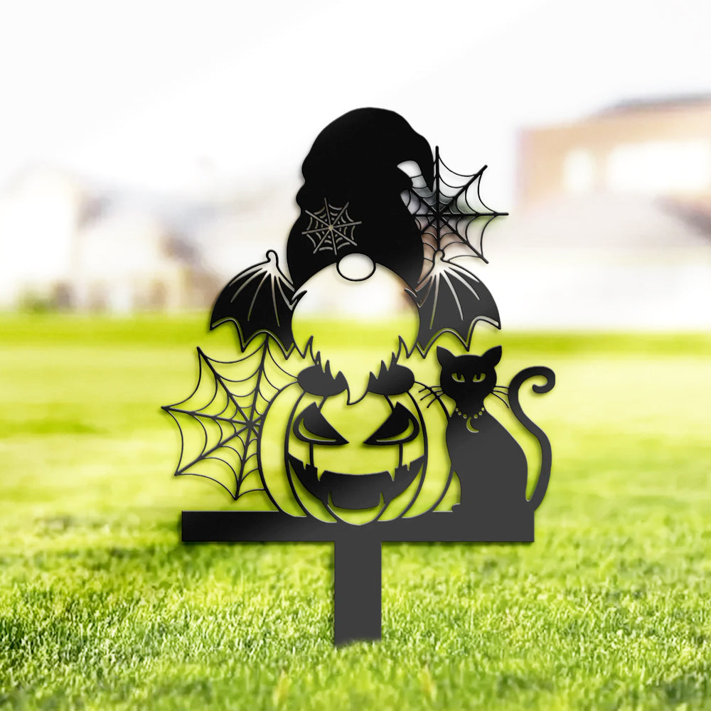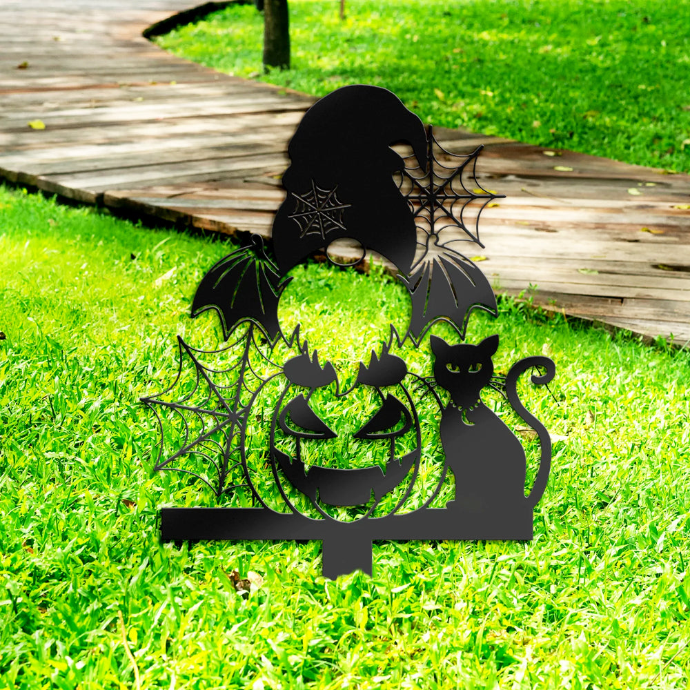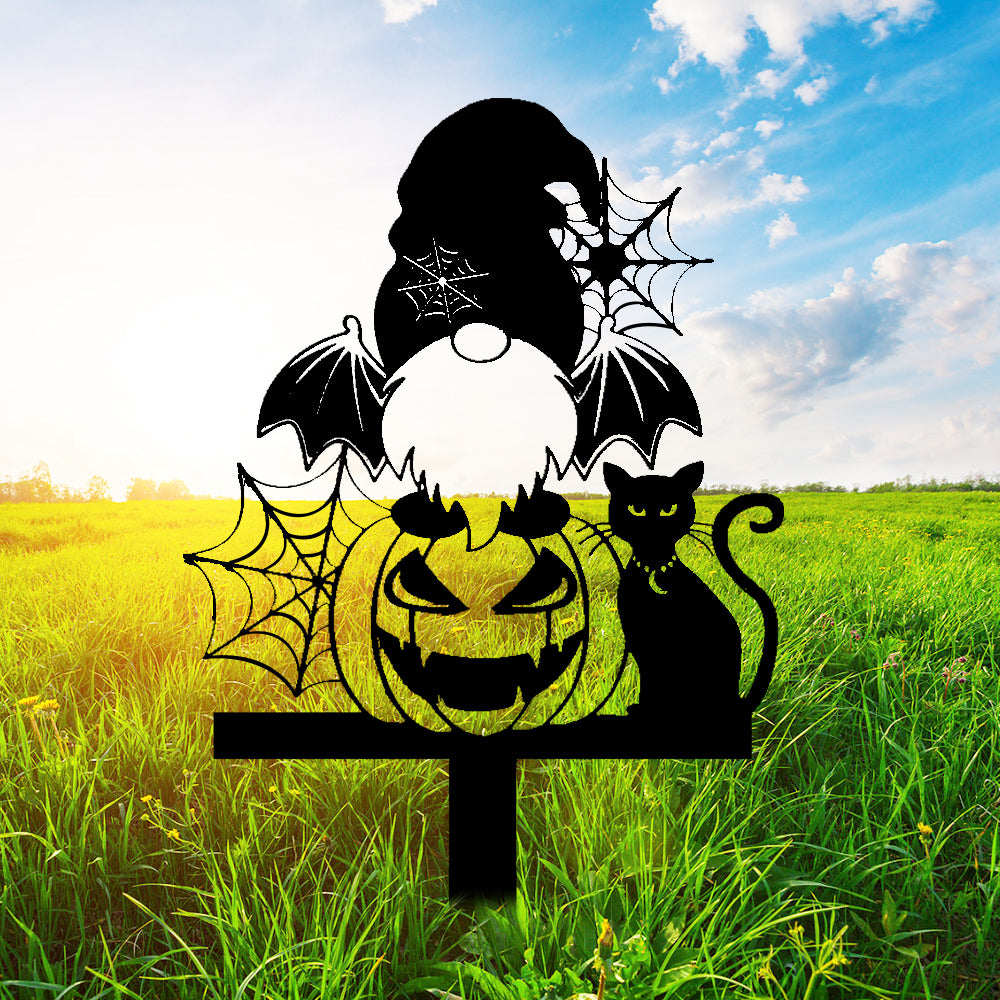 Halloween Bat wings Black Cat Pumpkin Metal Yard Stake