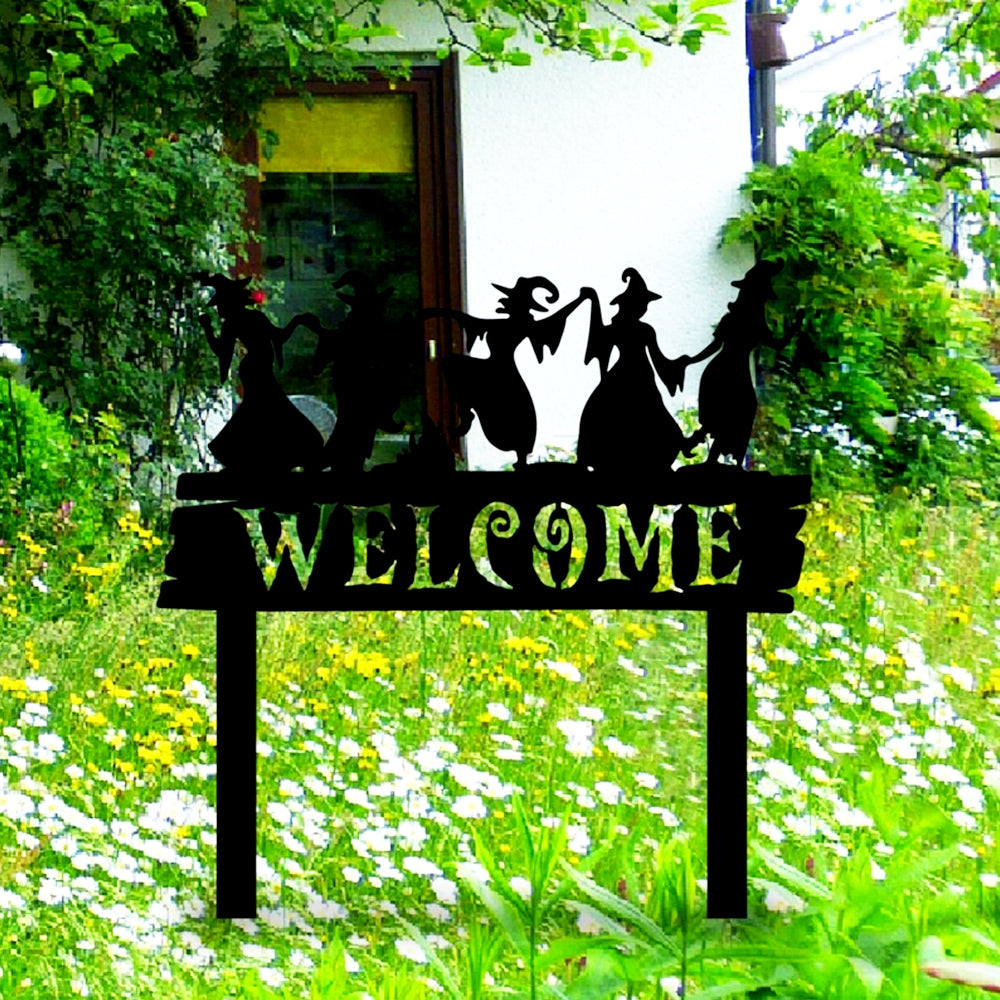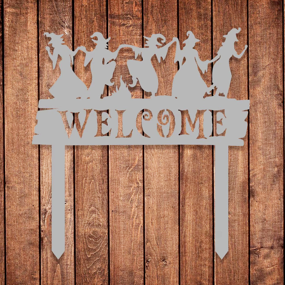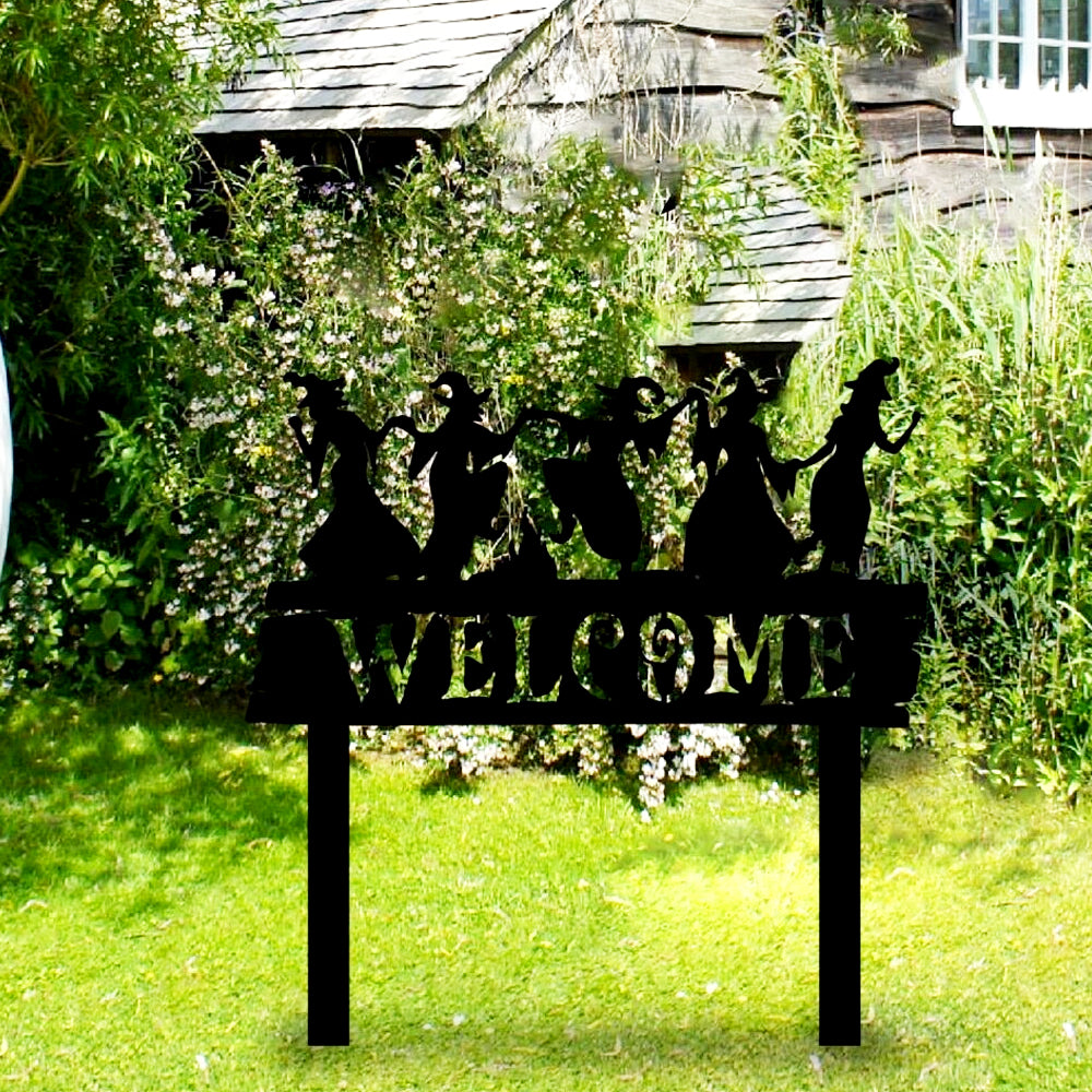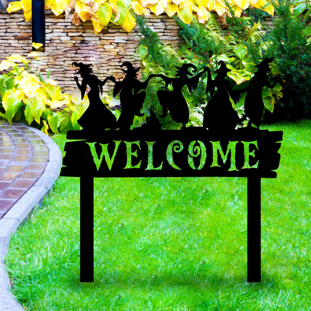 Welcome Halloween Witches Metal Yard Stake