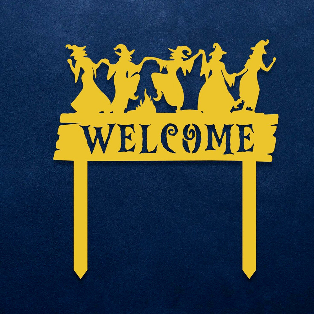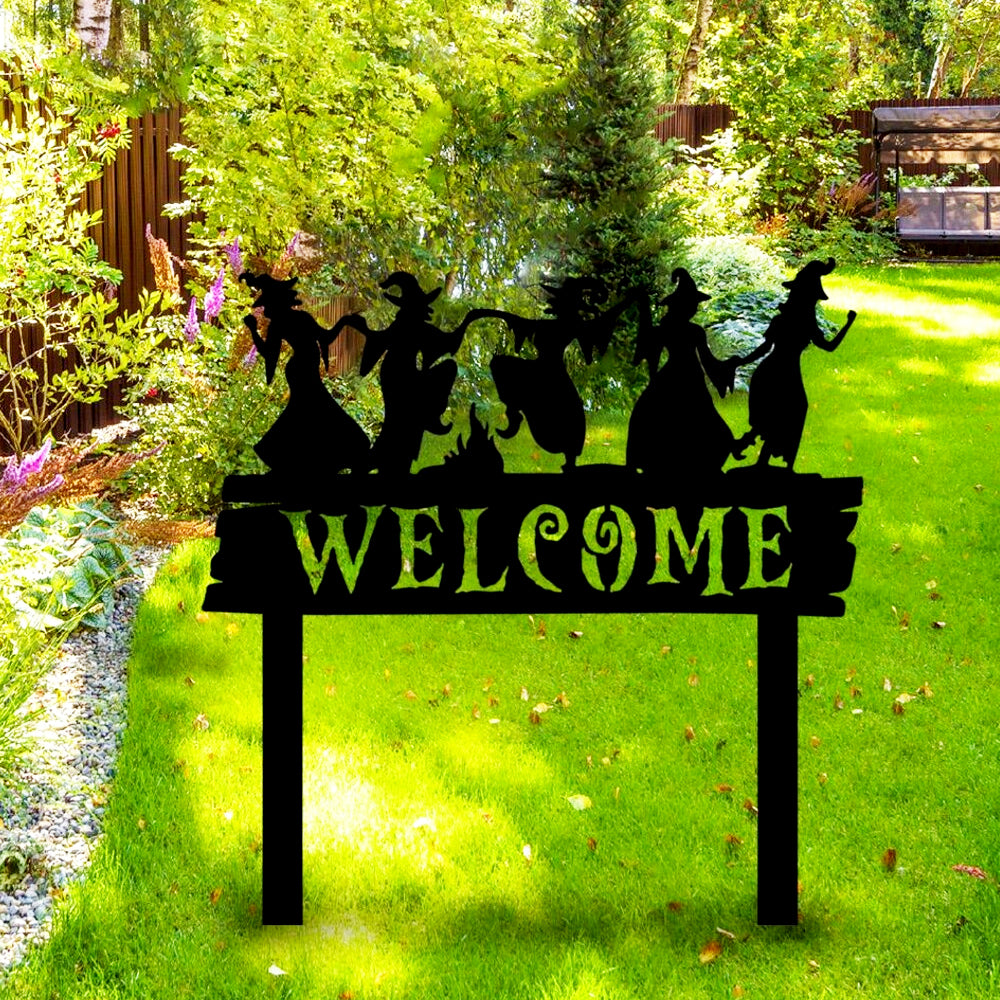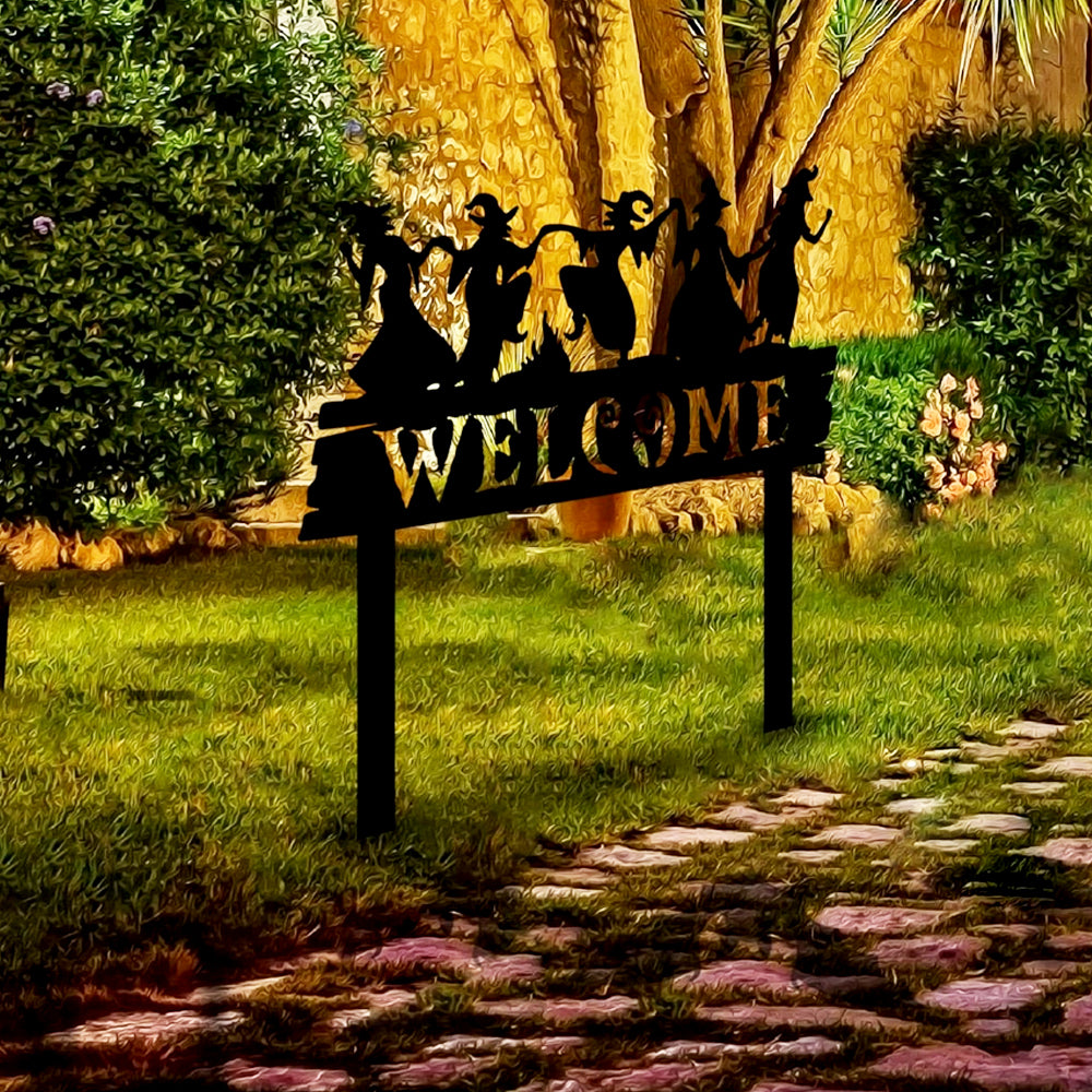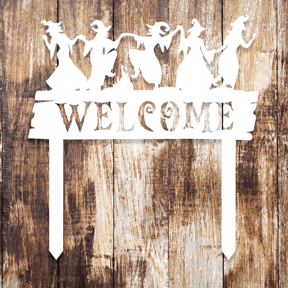 Welcome Halloween Witches Metal Yard Stake