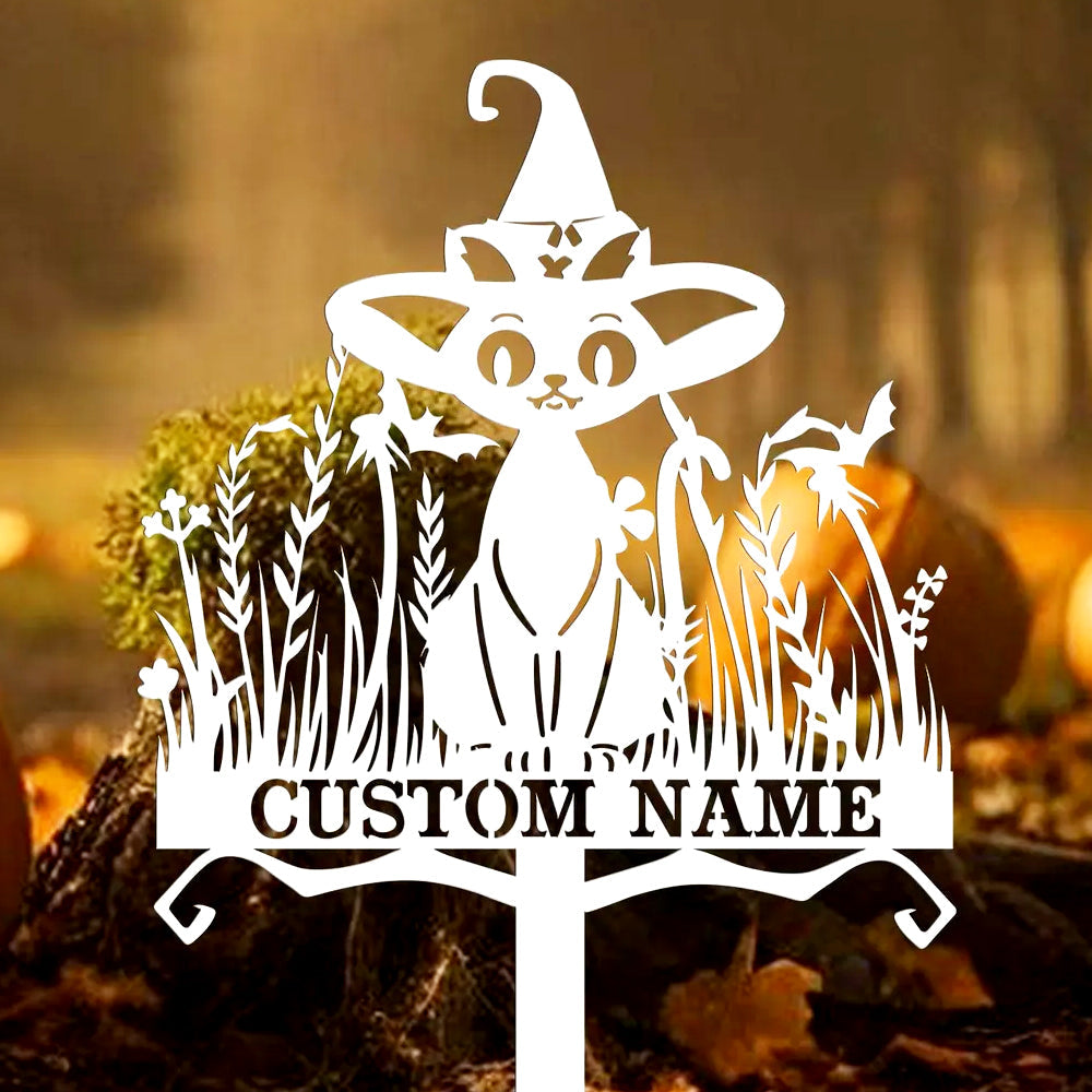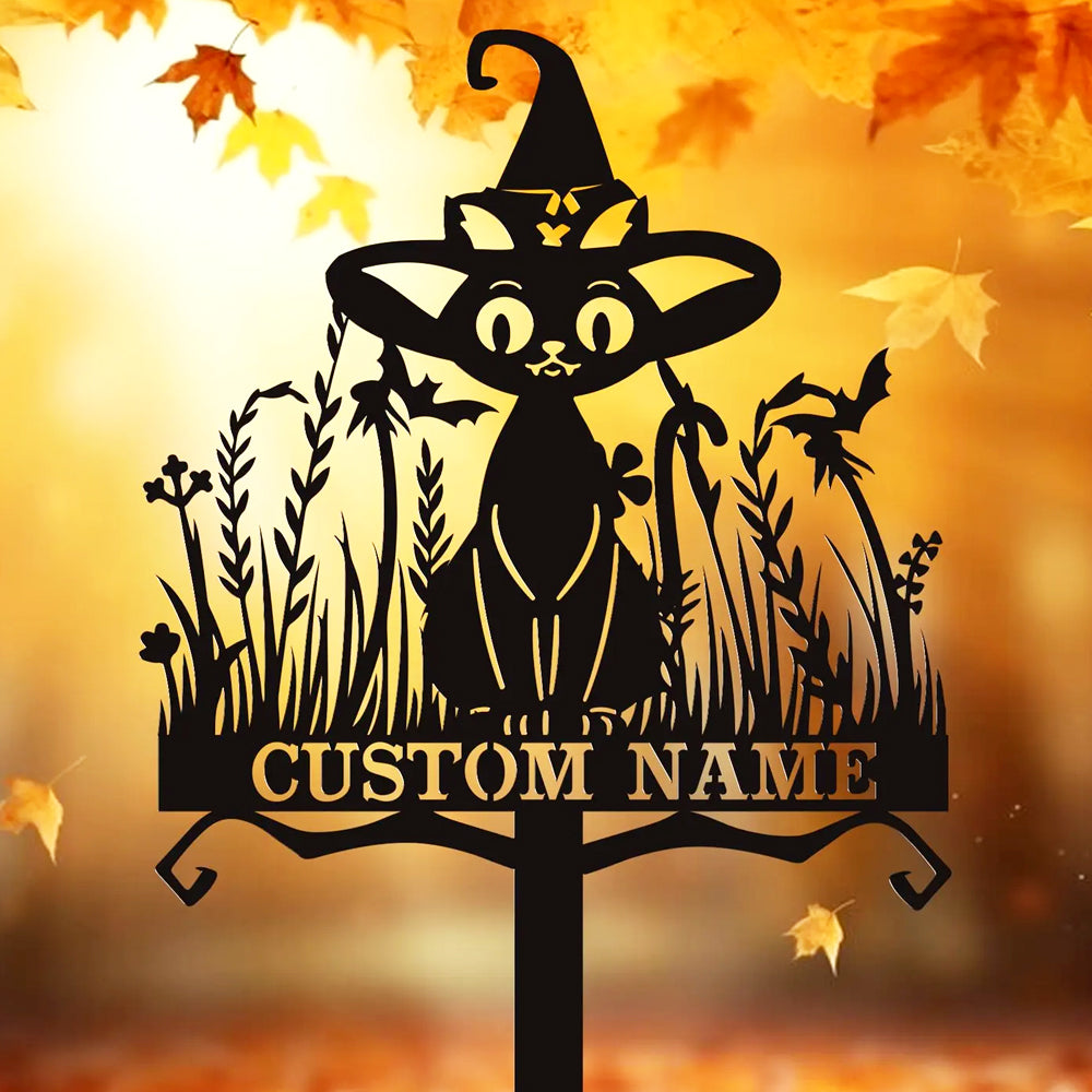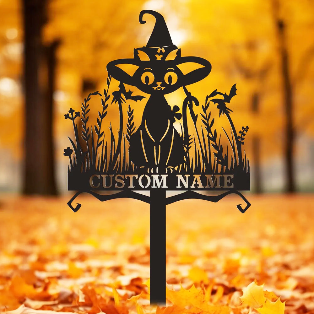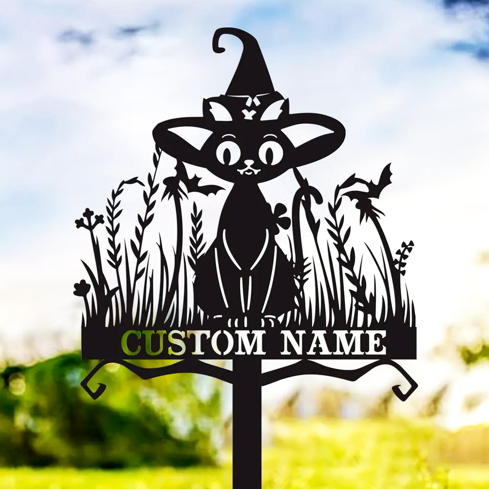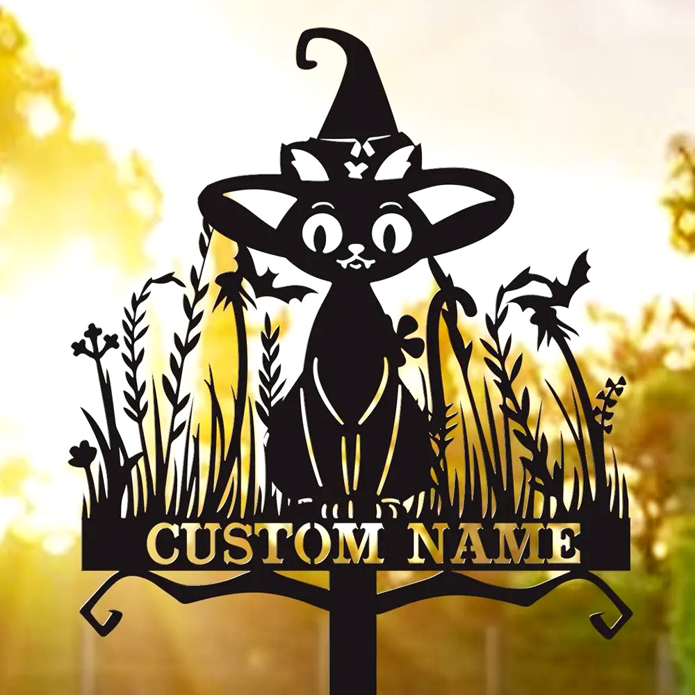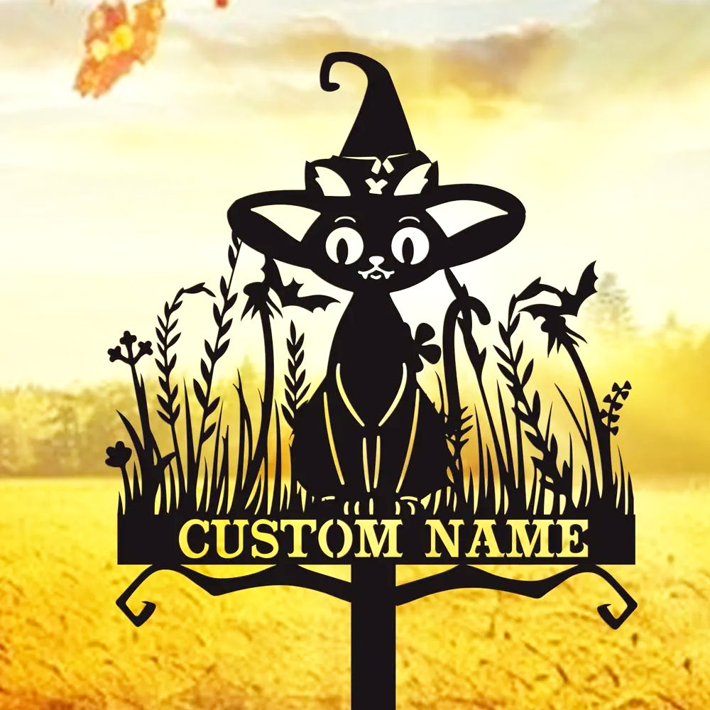 Witch Black Cat Halloween Metal Yard Stake