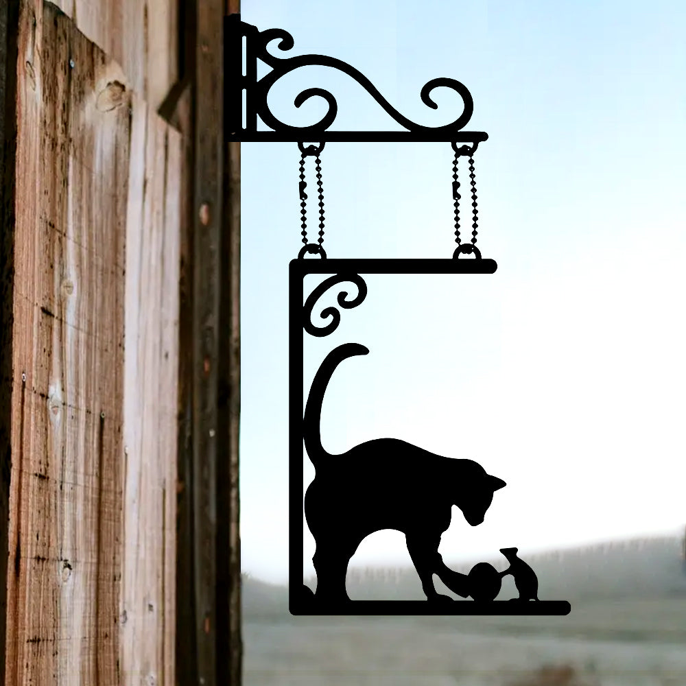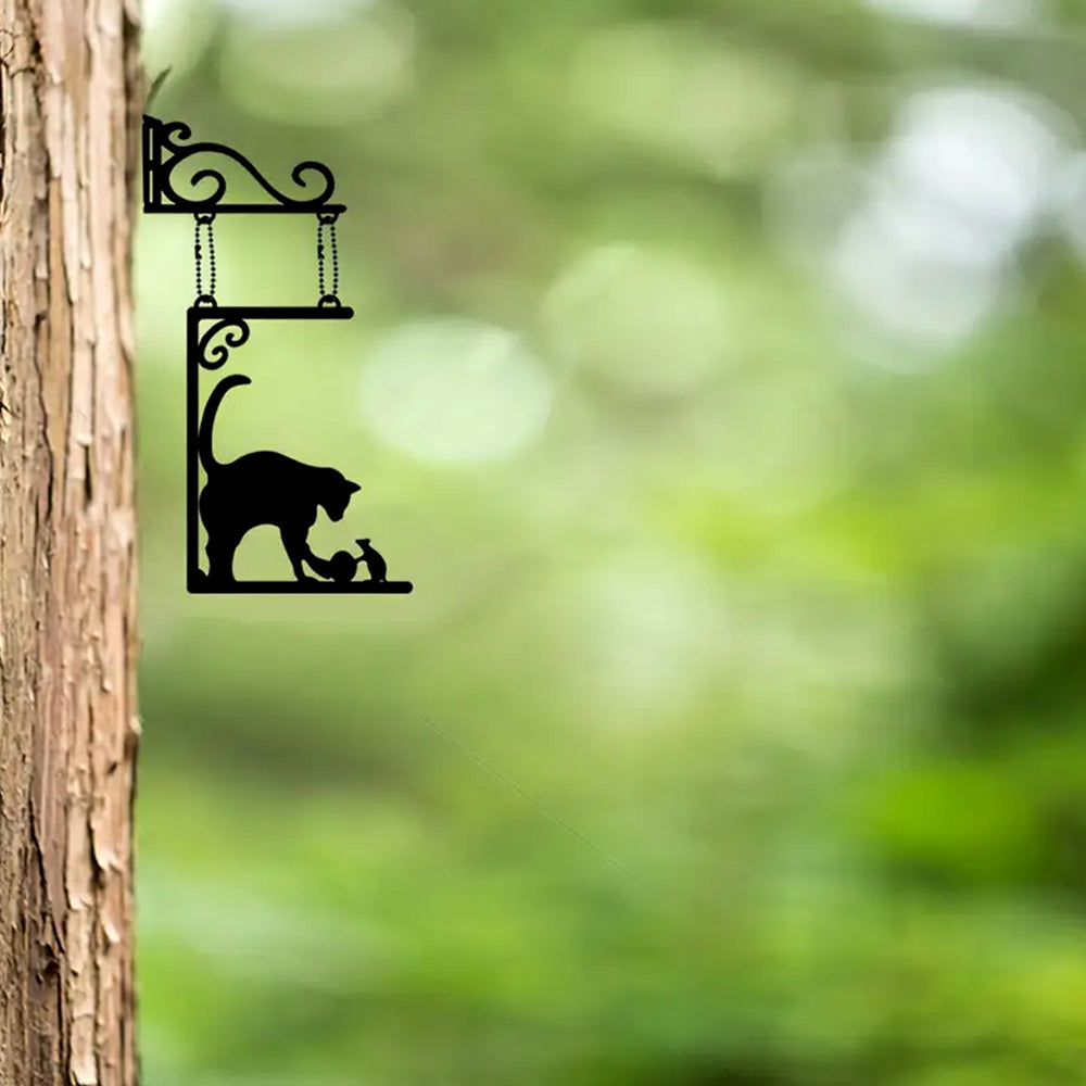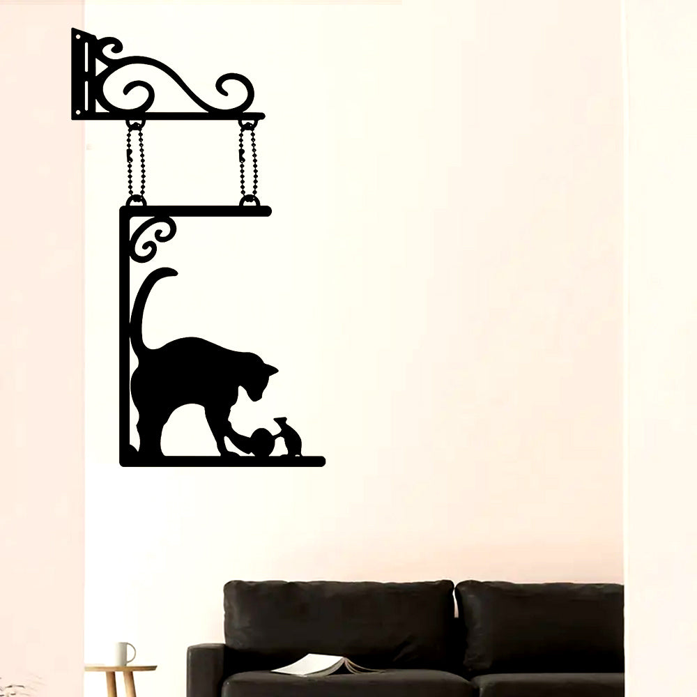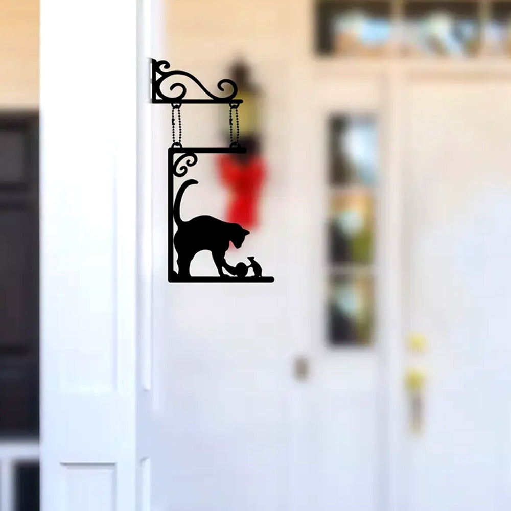 Charming Cat and Mouse Door Sign Hanging Chain Metal Art