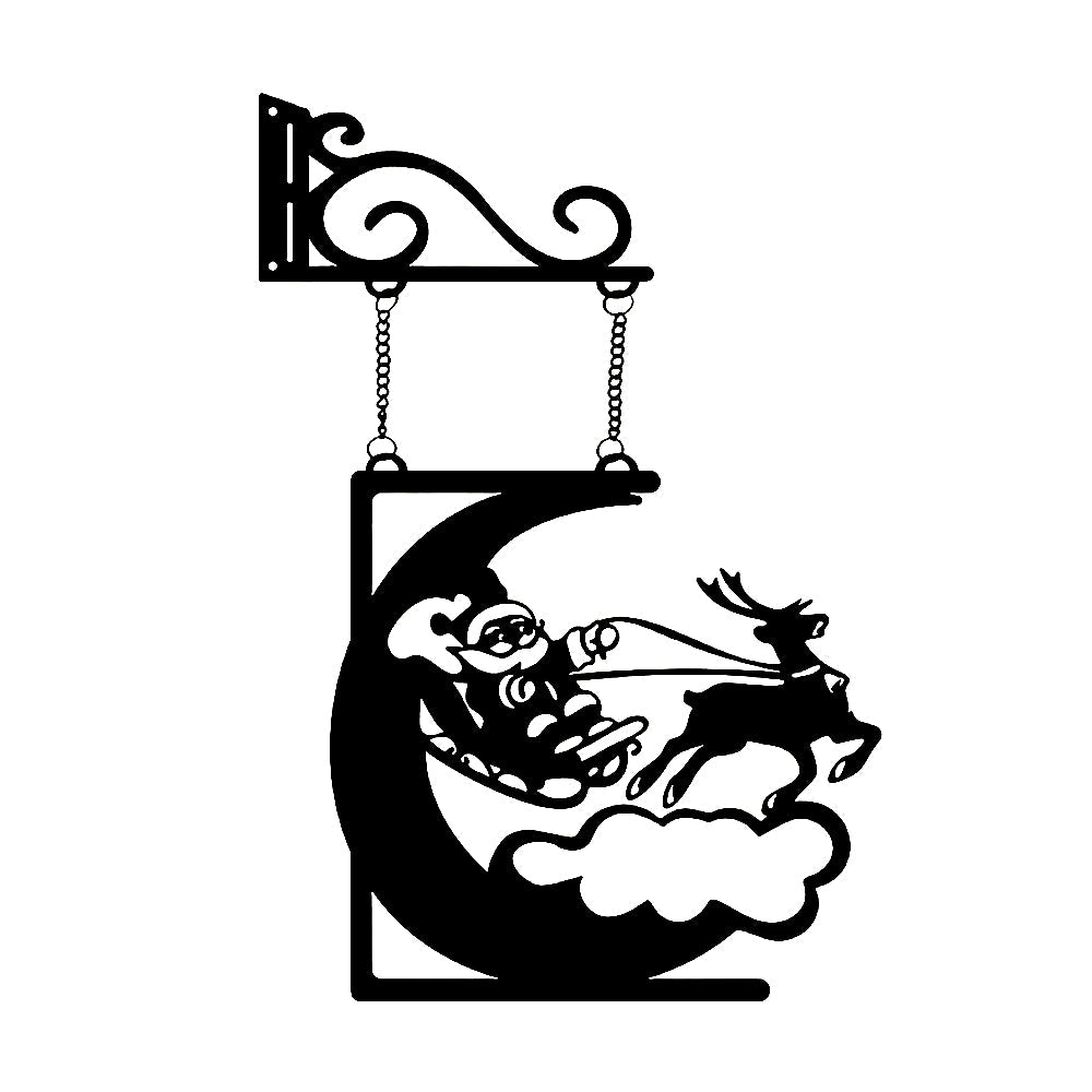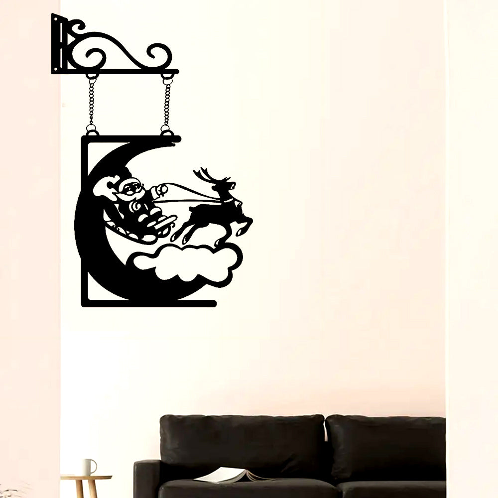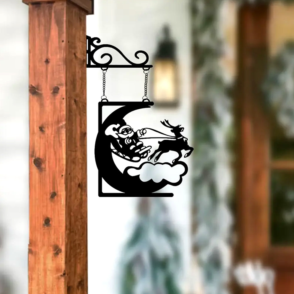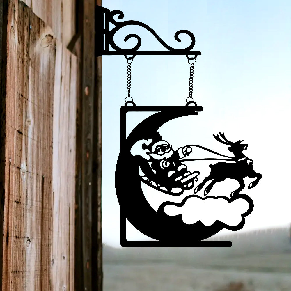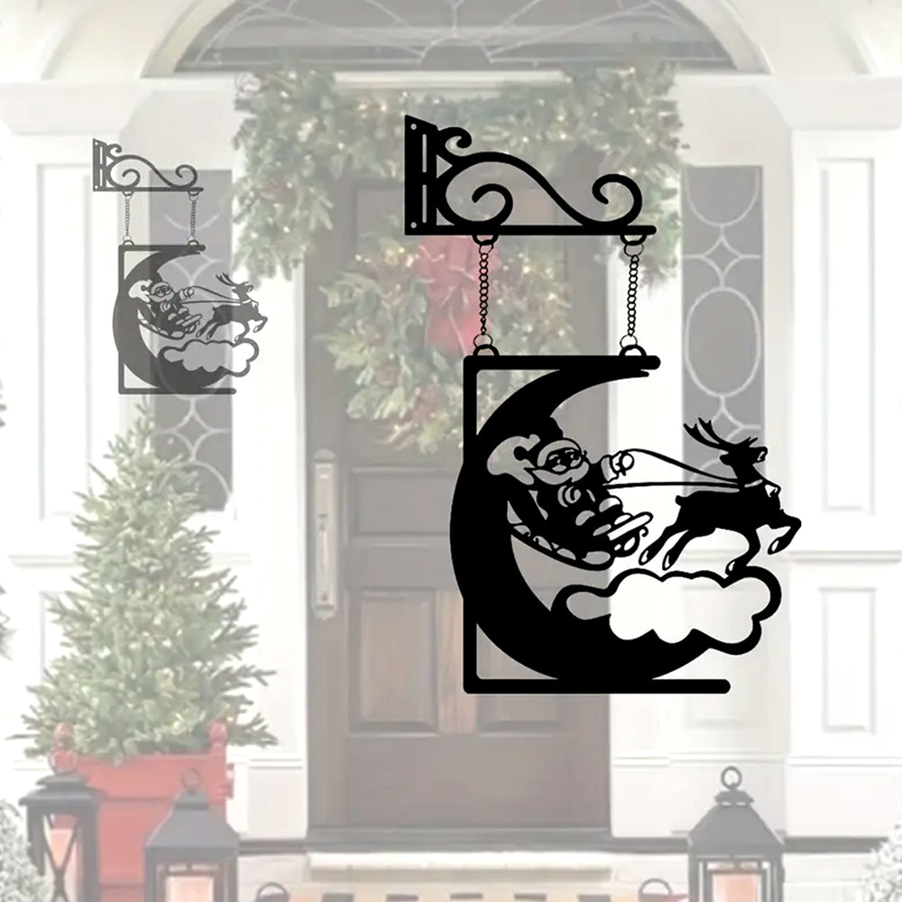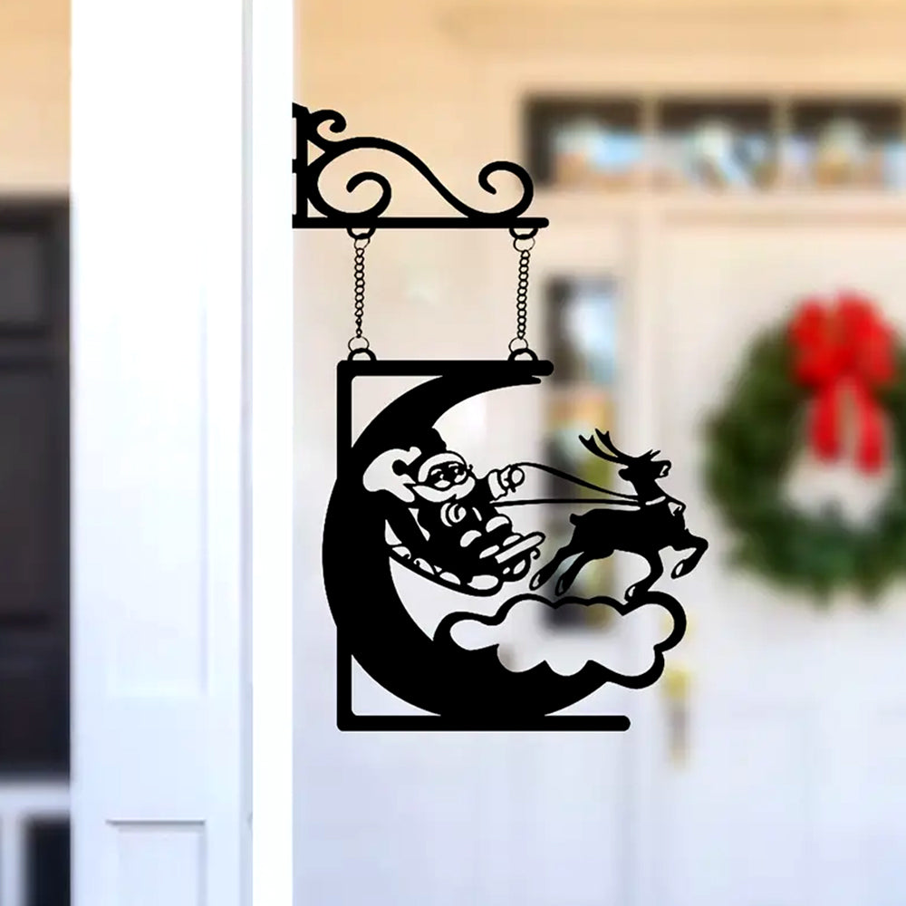 Christmas Santa Claus Door Sign Hanging Chain Metal Art