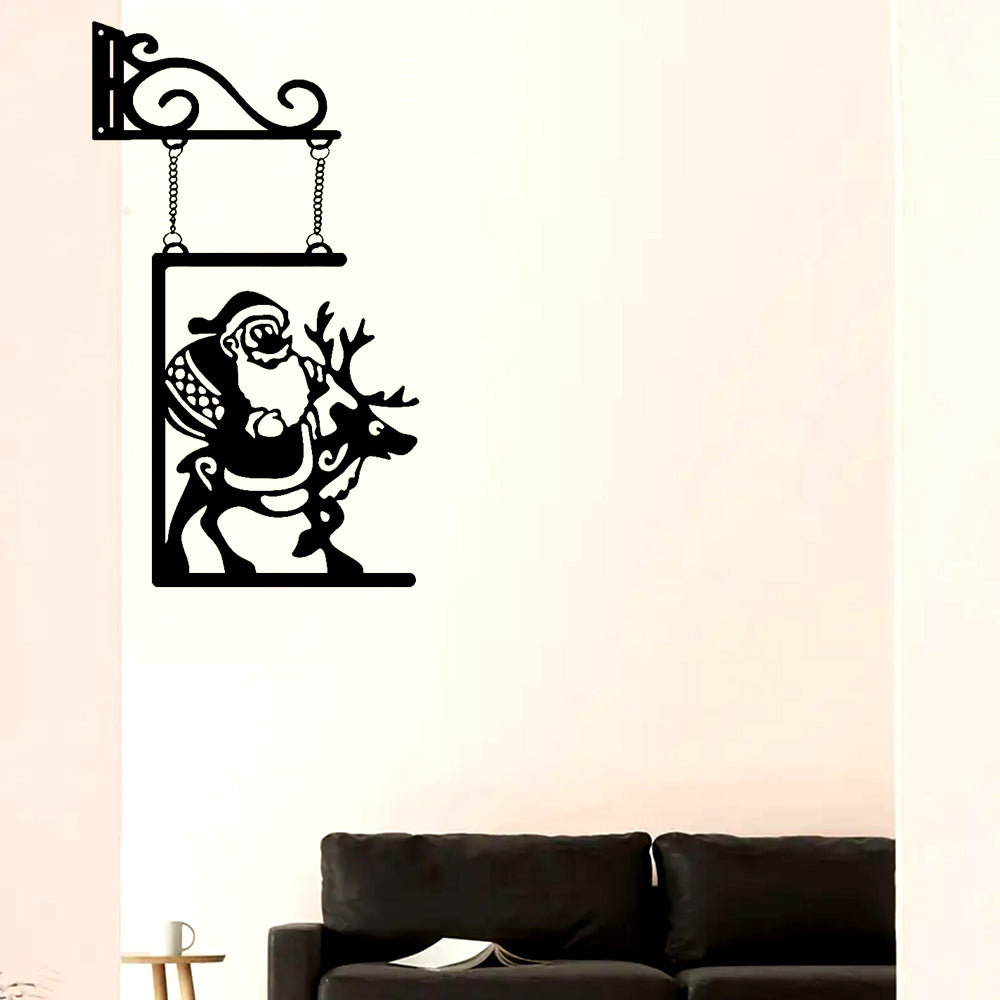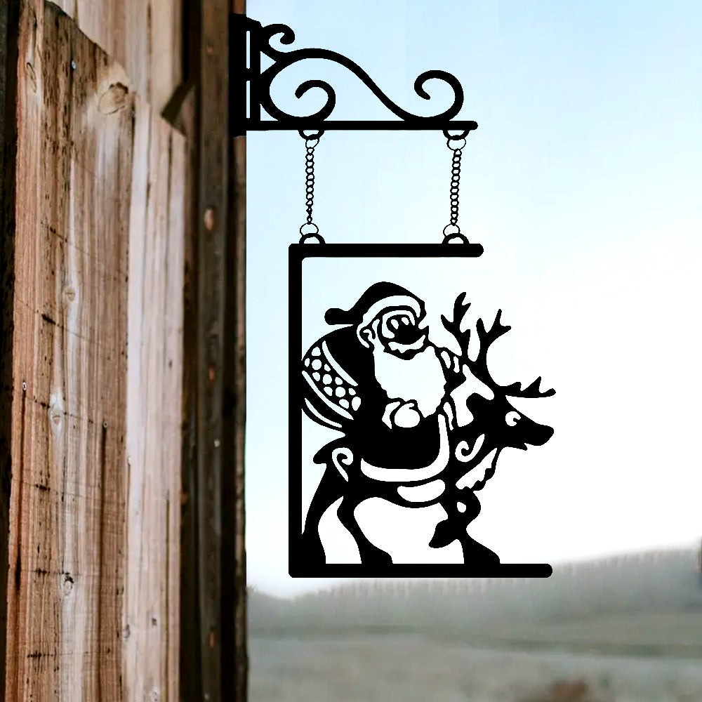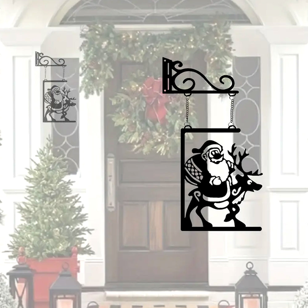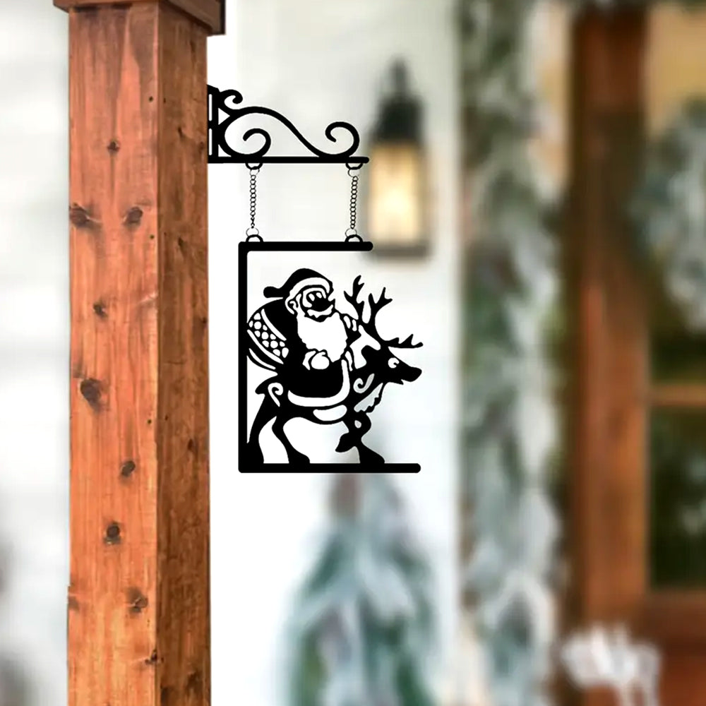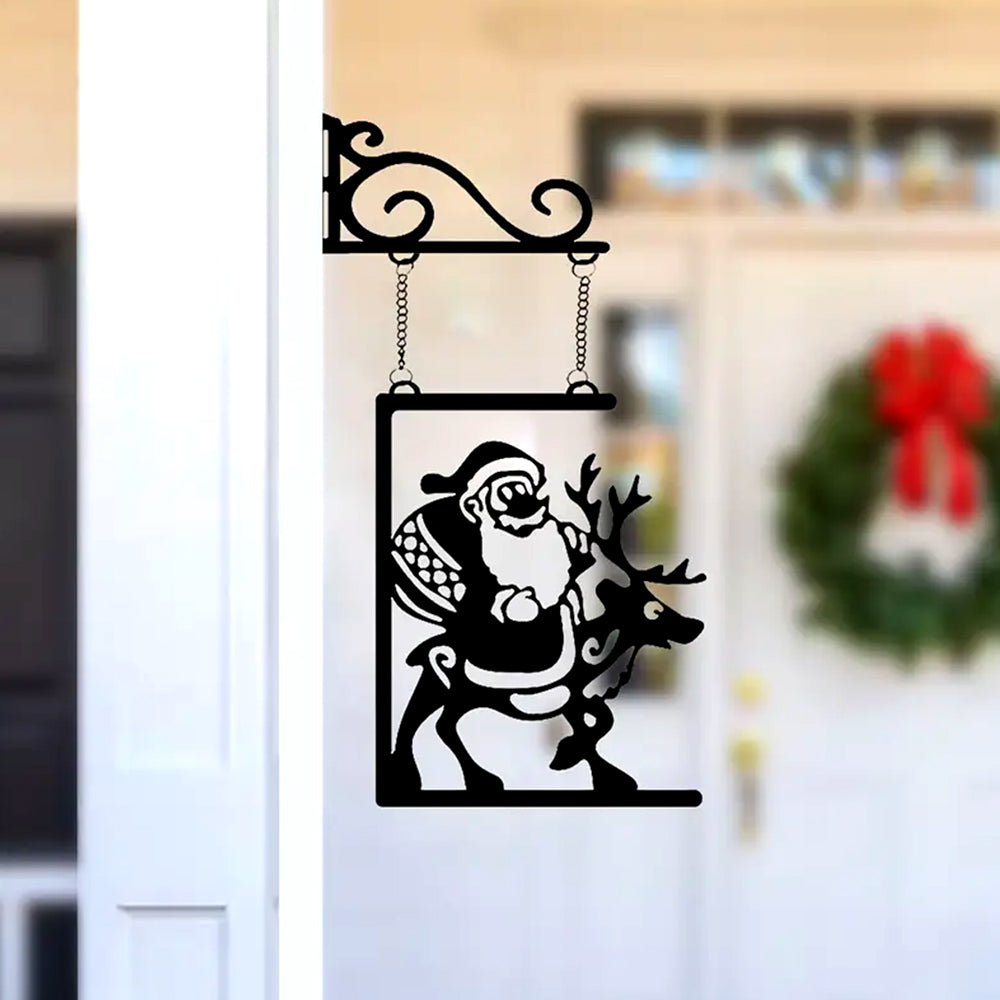 Classic Santa Claus Door Sign Hanging Chain Metal Art