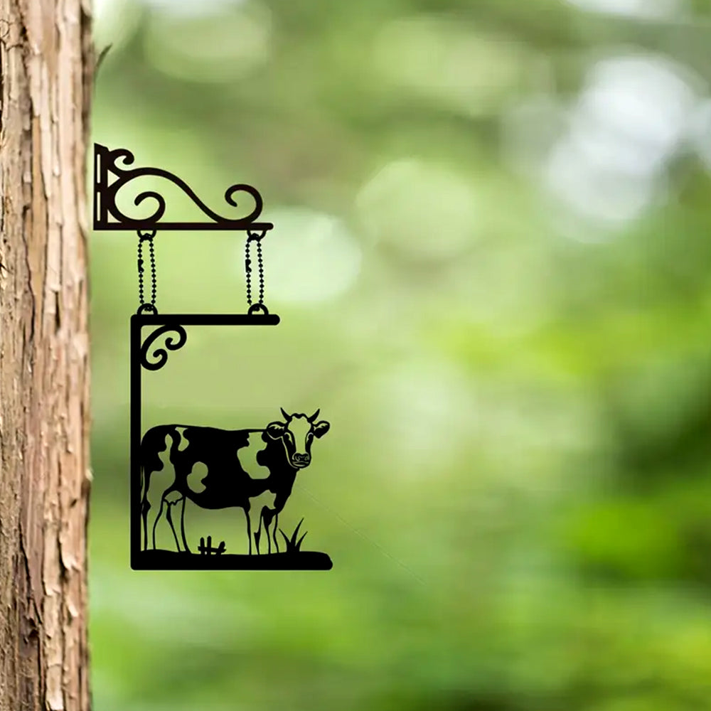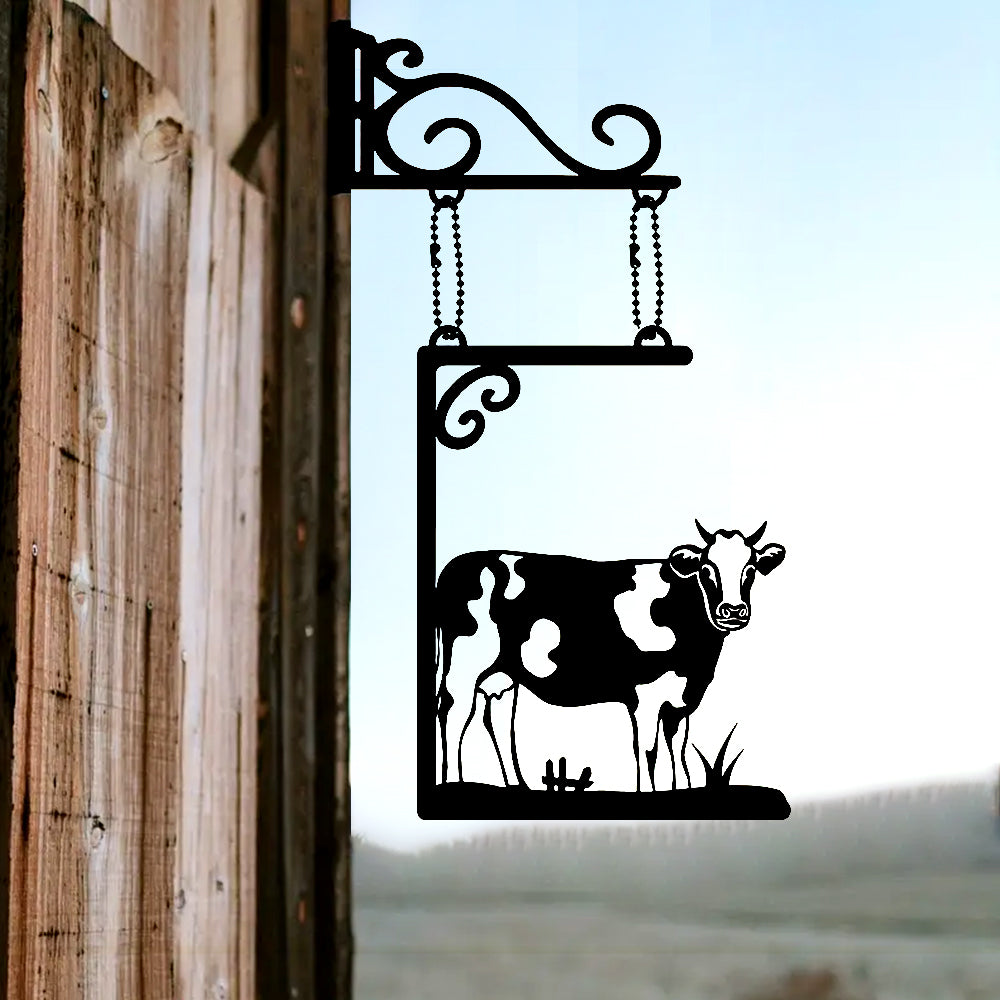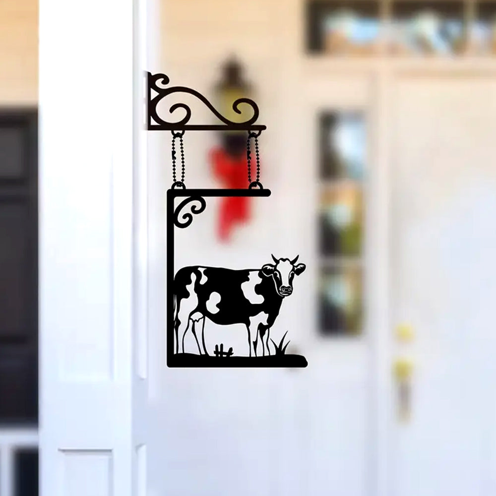 Cow Door Sign Hanging Chain Metal Art