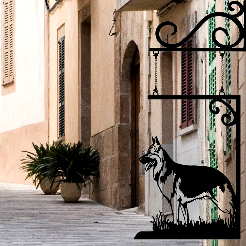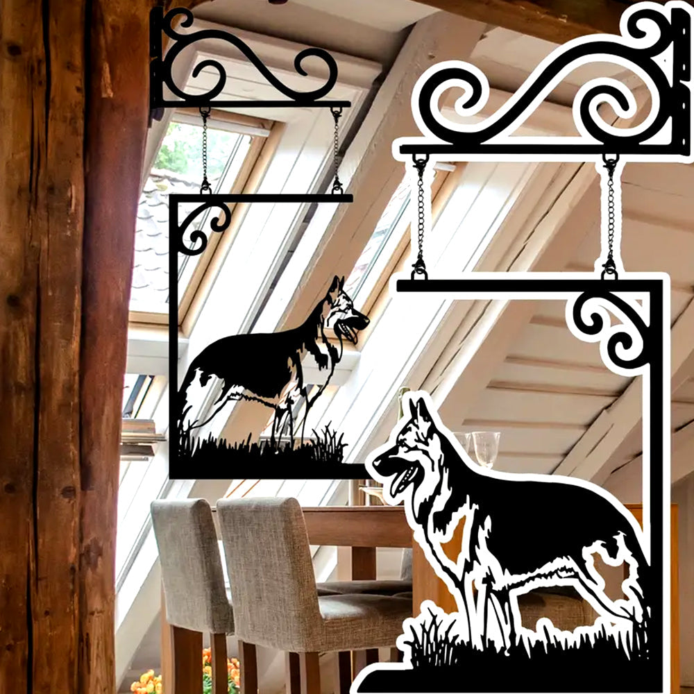 German Shepherd Dog Door Sign Hanging Chain Metal Art