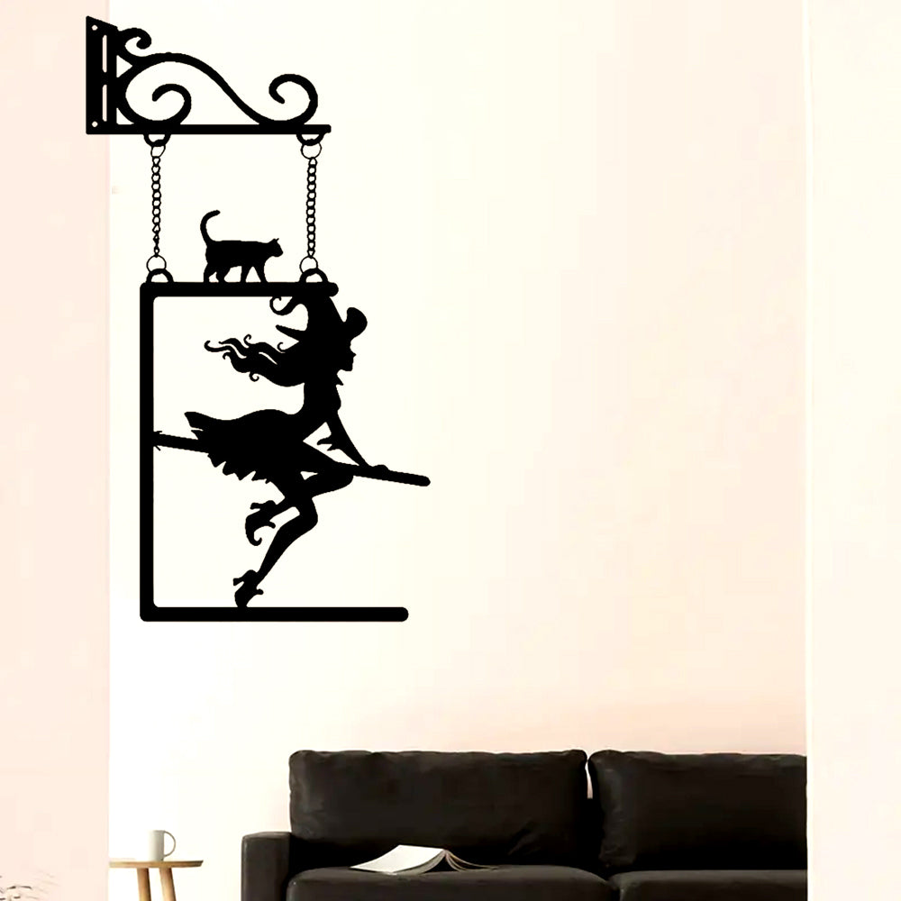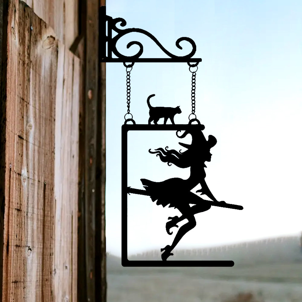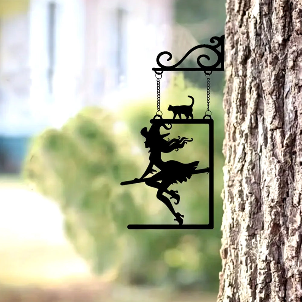 Witch and Cat Door Sign Hanging Chain Metal Art