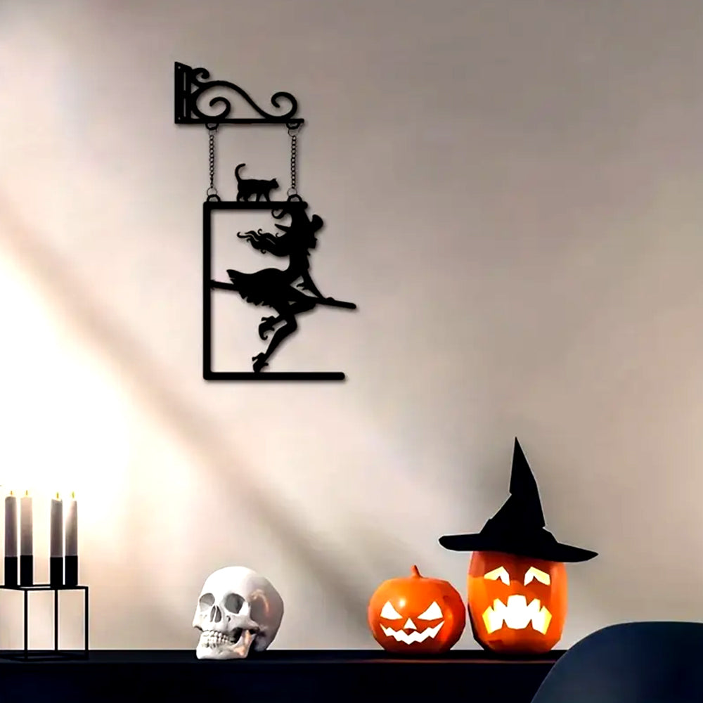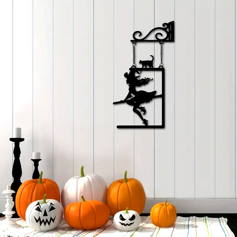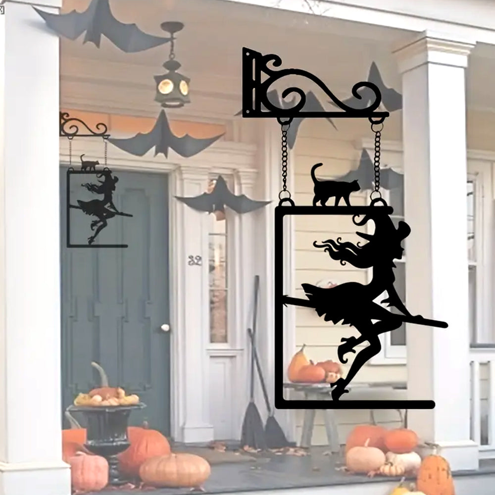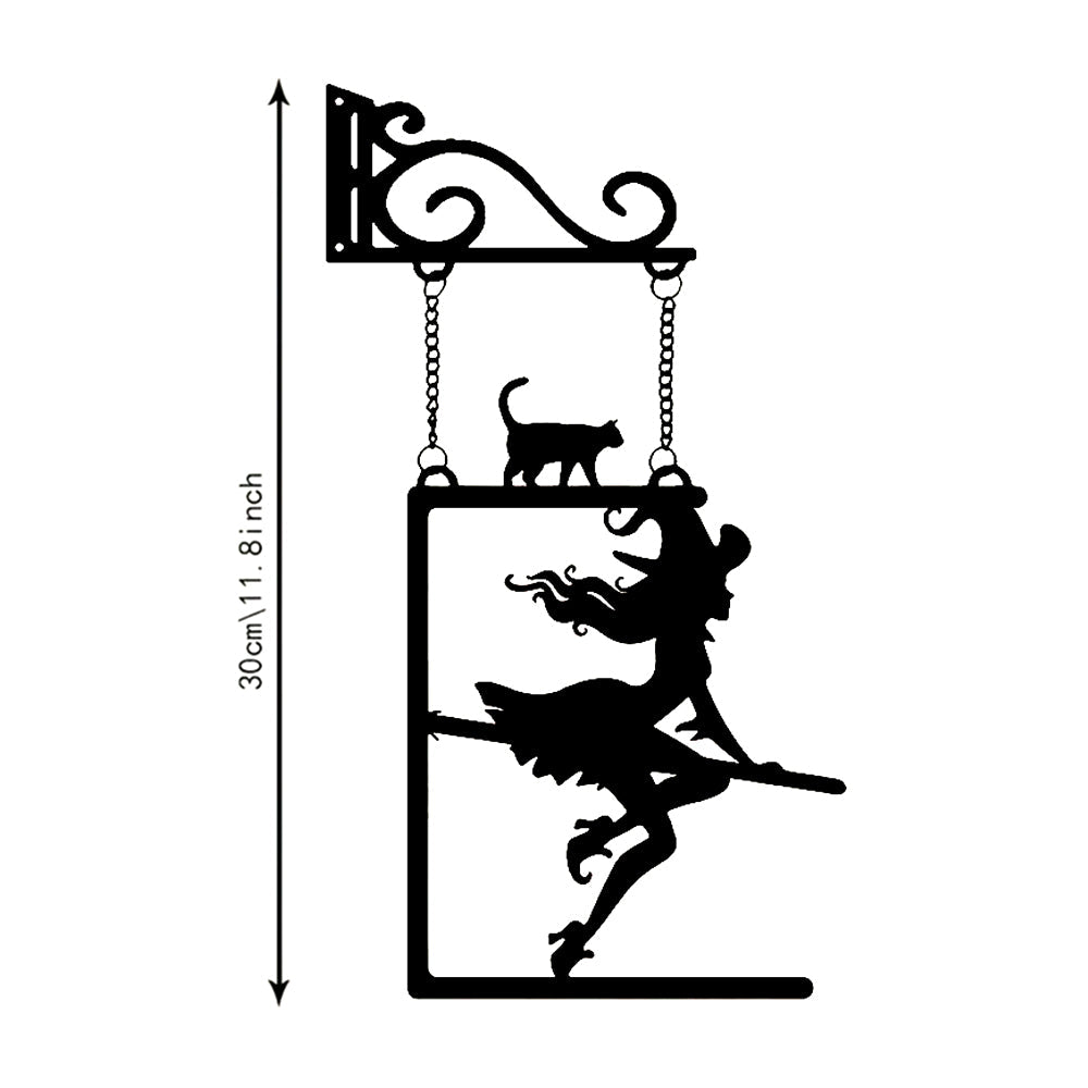 Witch and Cat Door Sign Hanging Chain Metal Art