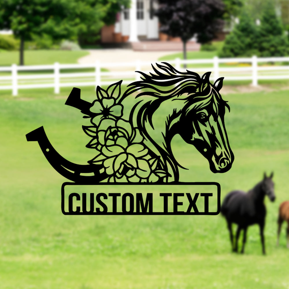 Custom Floral Horse Sign Metal Wall Art Decoration
