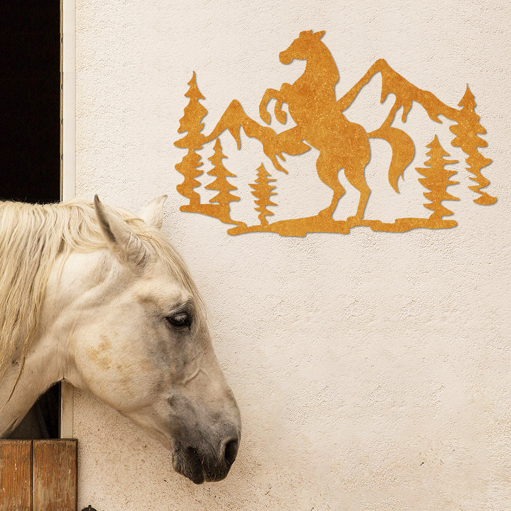 Horse and Mountain Art Metal Wall Art Decoration