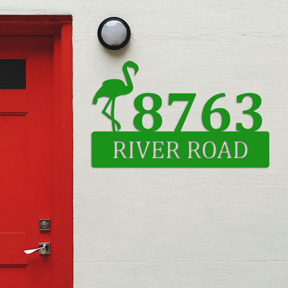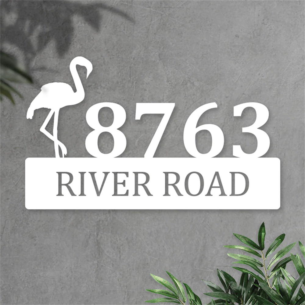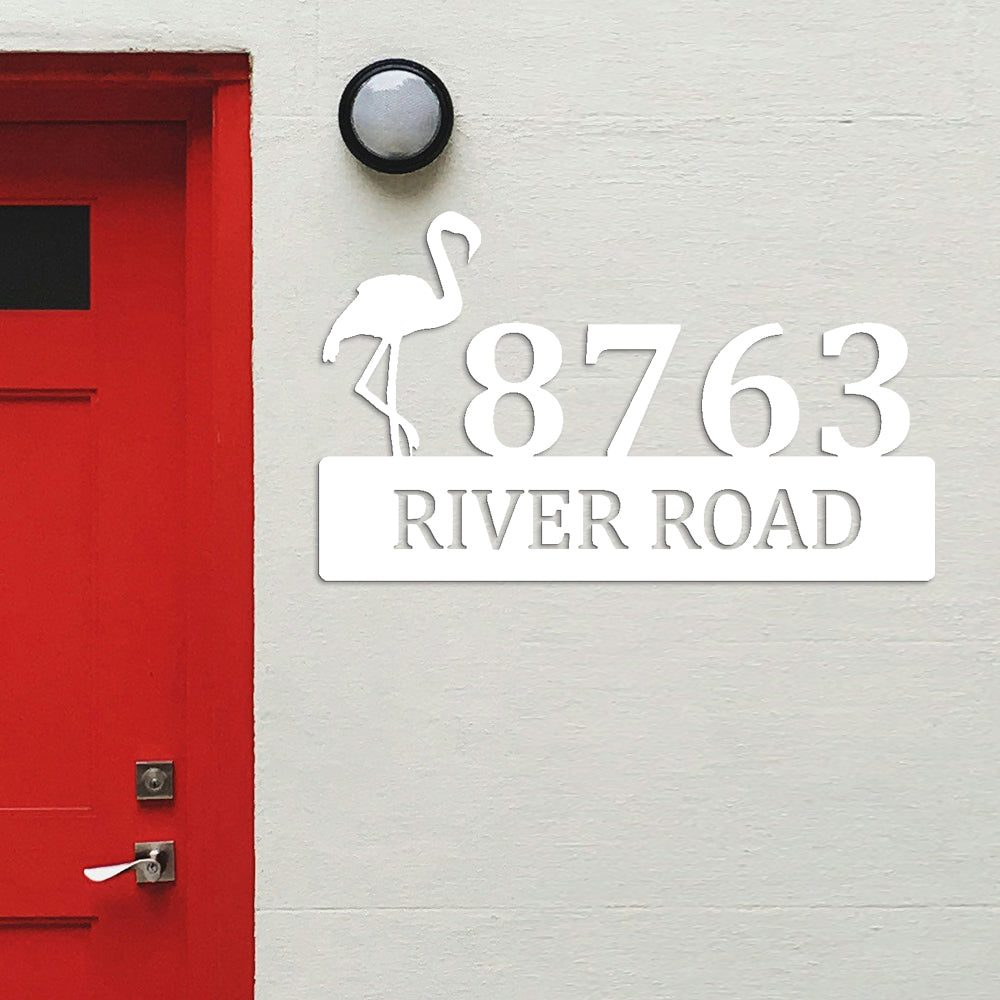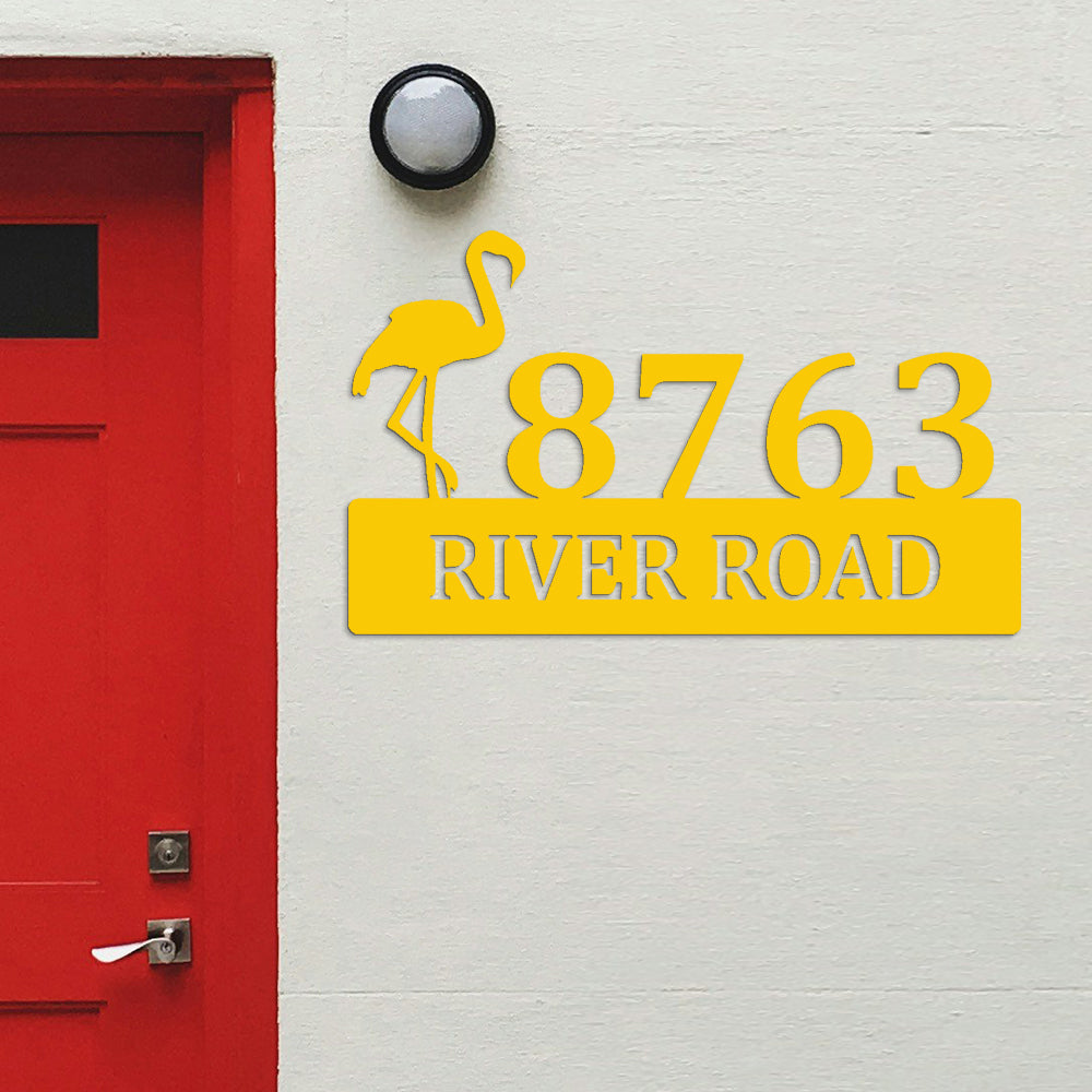 Flamingo House Numbers Plaque Address Metal Sign Custom