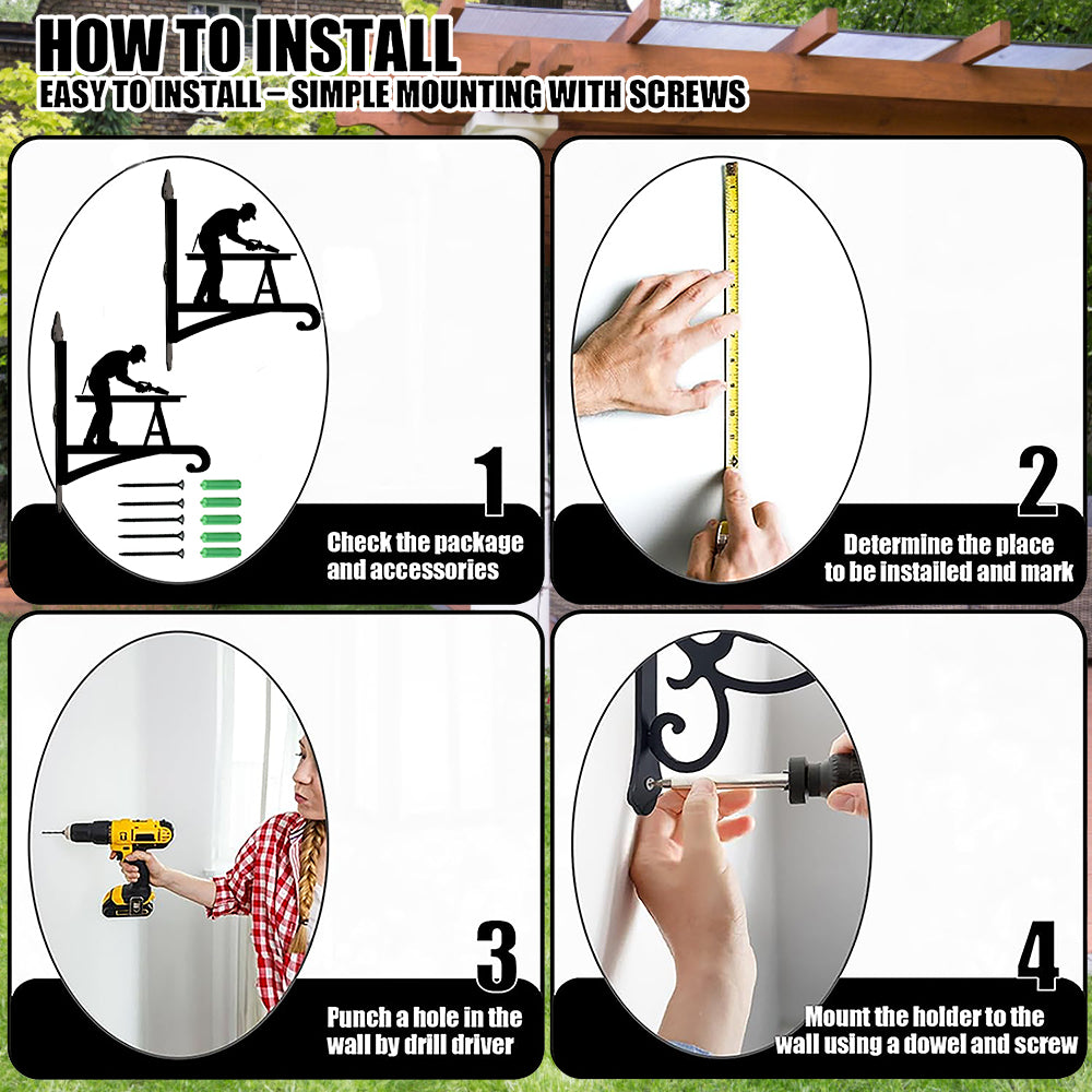 🔨Load-bearing Structure & rust-proof design: We use thickened iron plates material and a triangular fixed design to ensure that the plant hangers provides excellent support; The surface coating is anti-rust baking paint to ensure that the metal hanger has a long lasting life under all weather conditions.