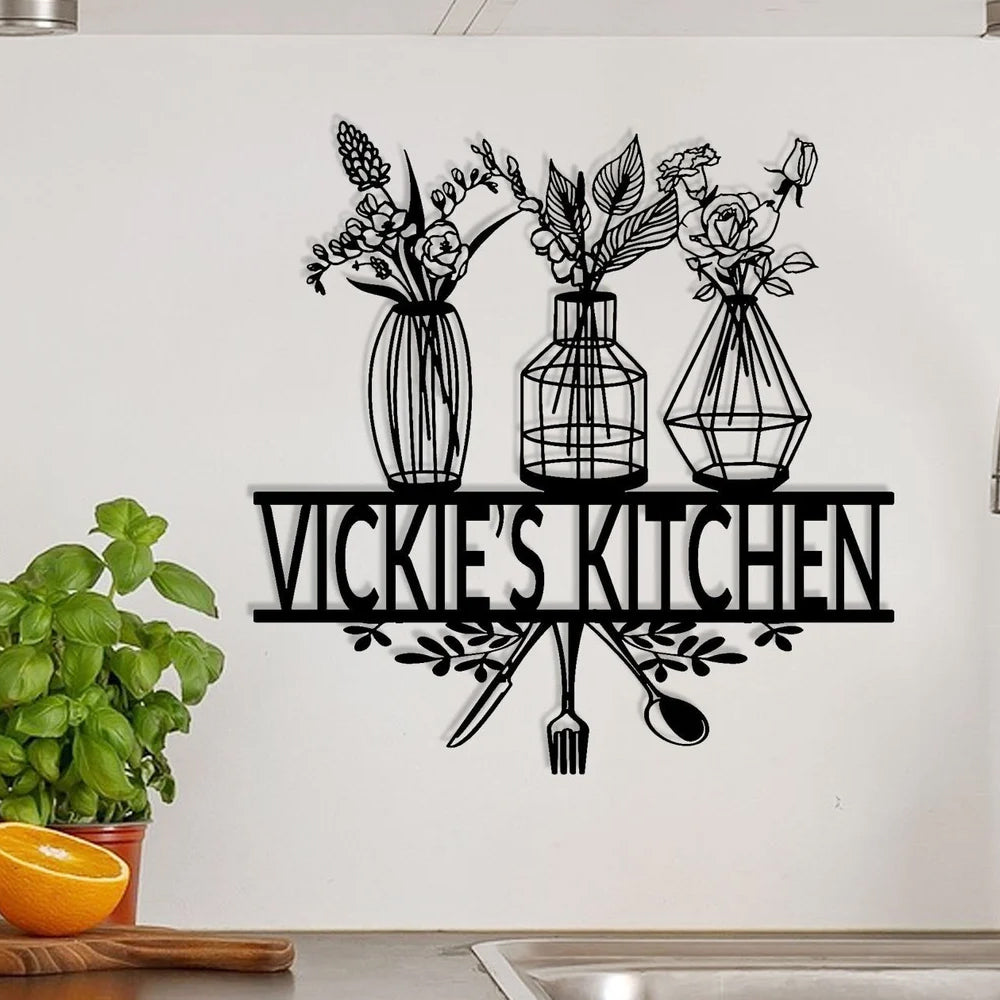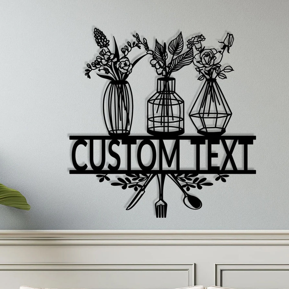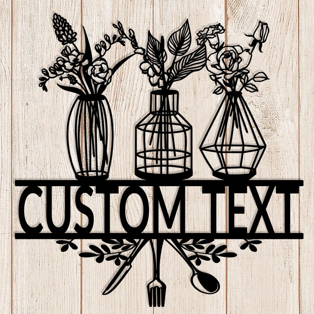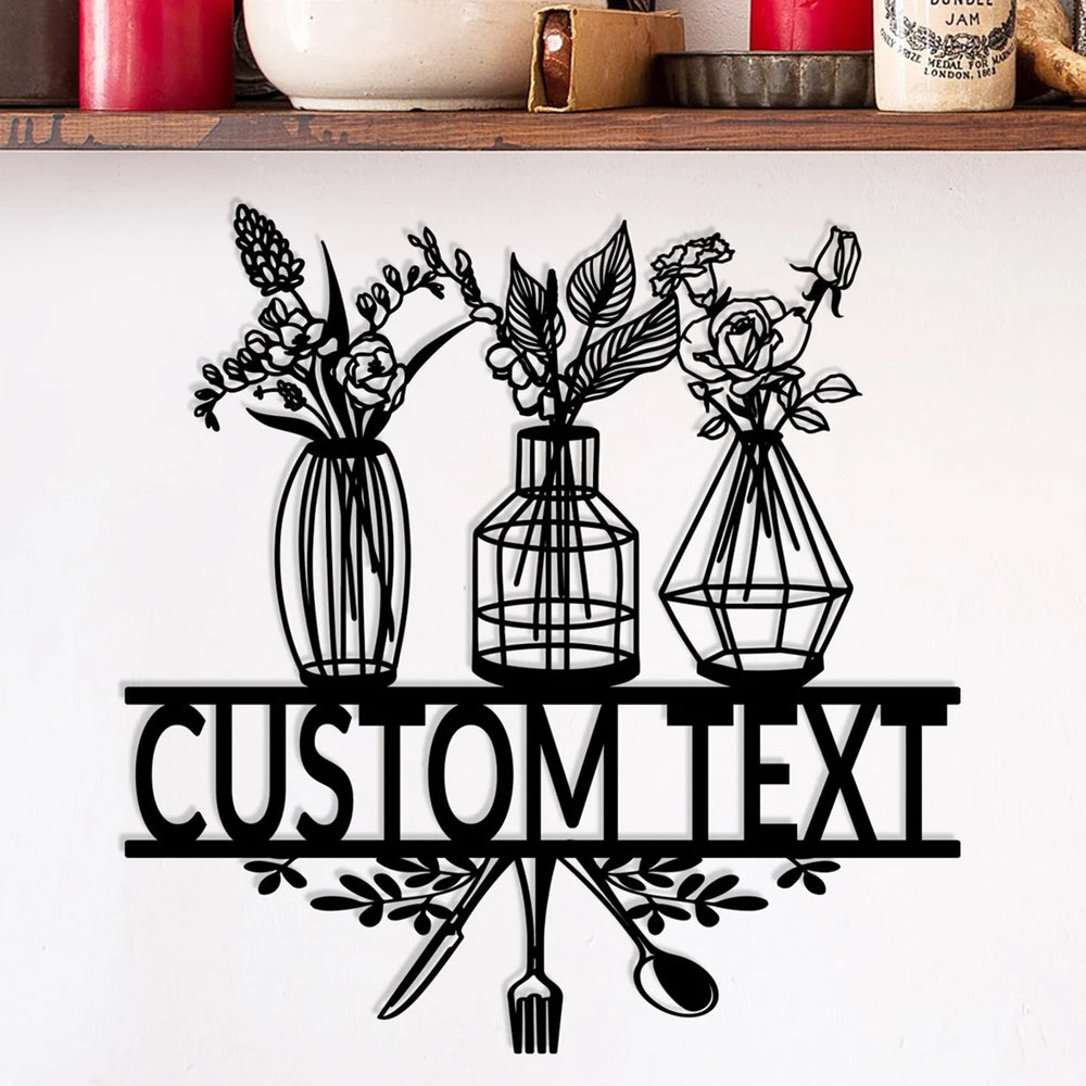 Custom Metal Sign for Kitchen with Flower Metal Wall Art Decoration