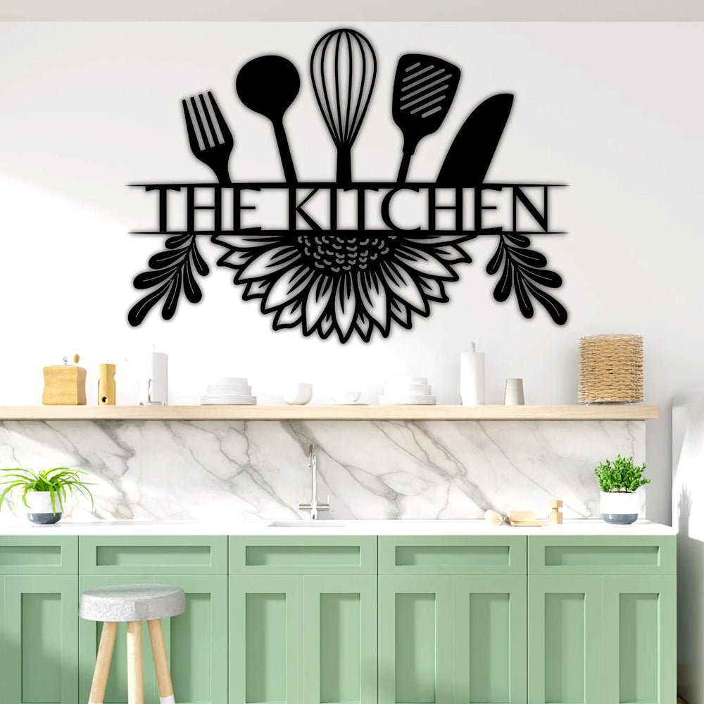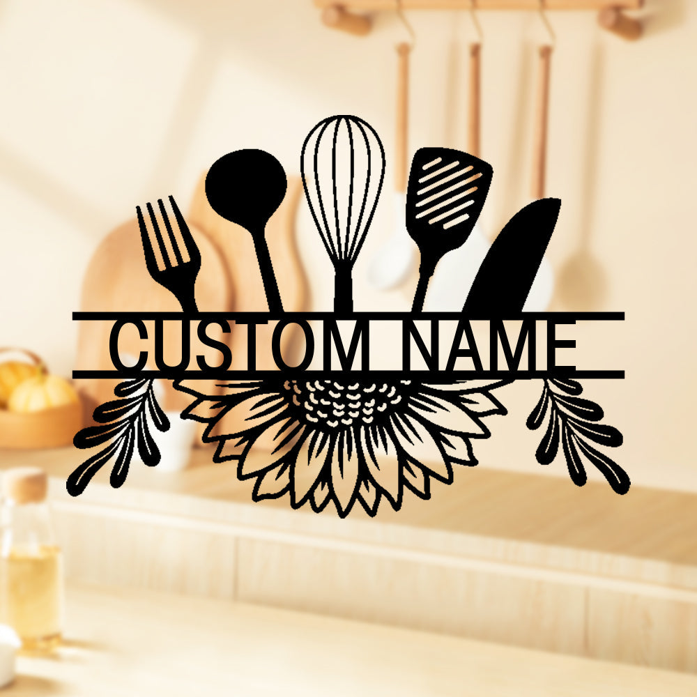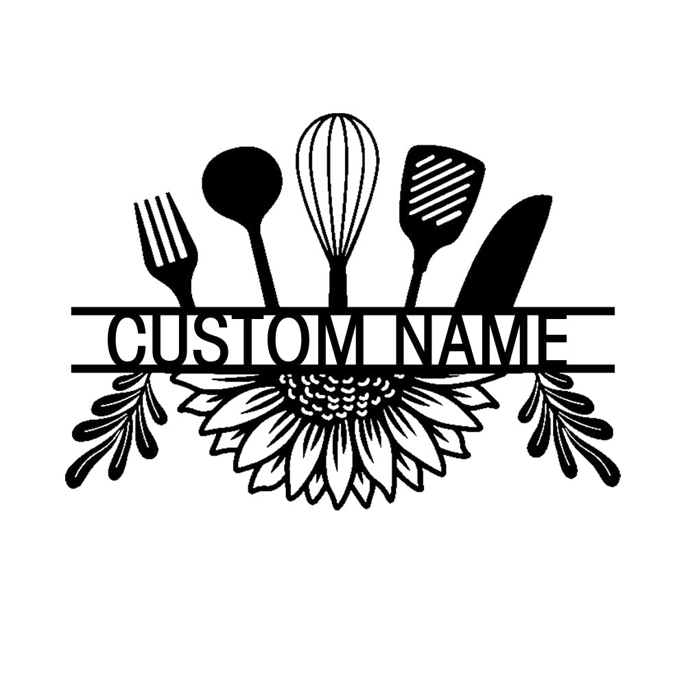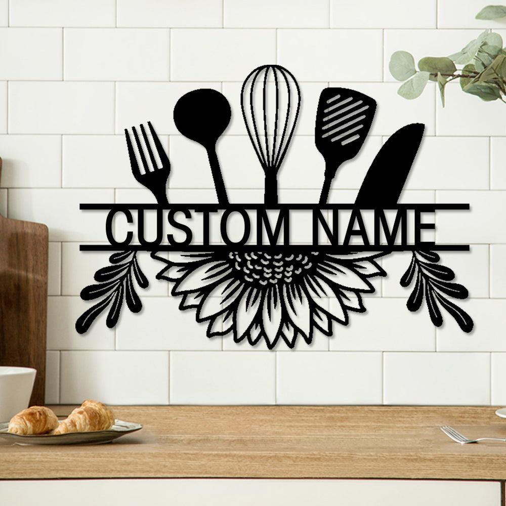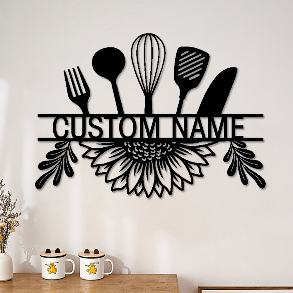 Custom Name Kitchen with Knife and Fork Metal Wall Art Decoration