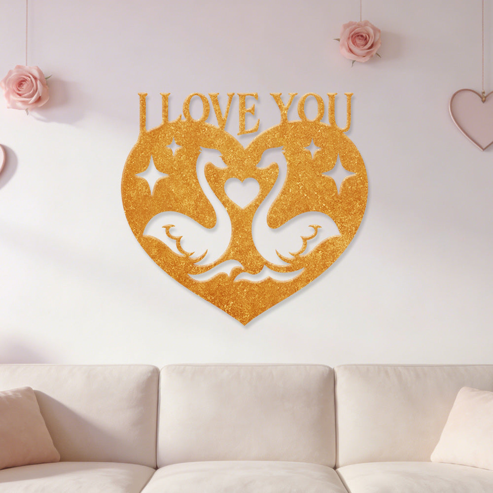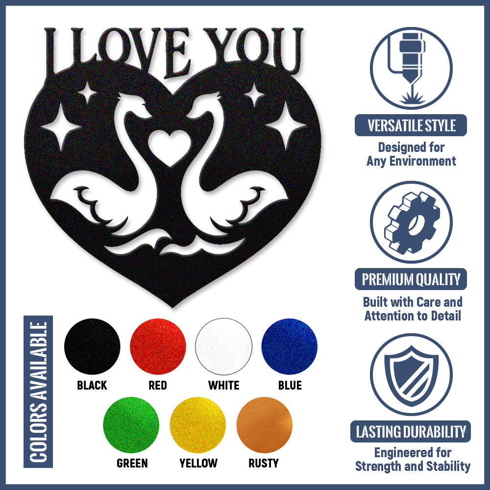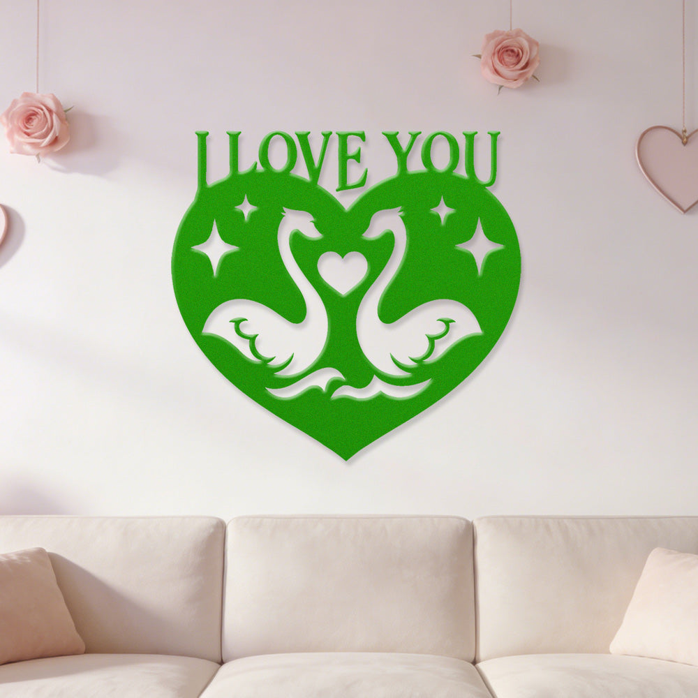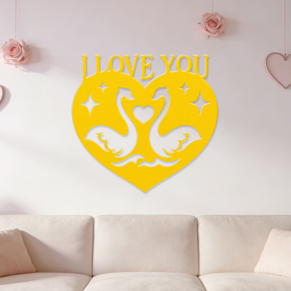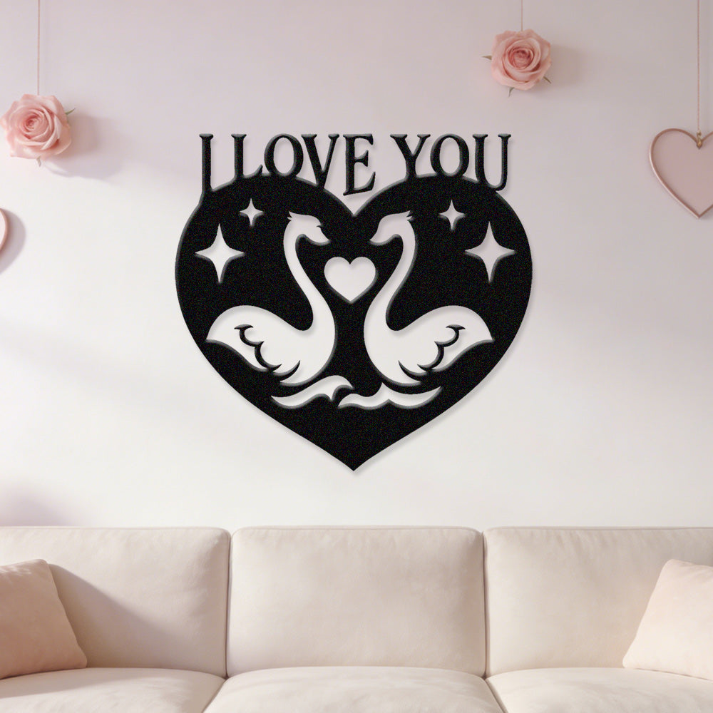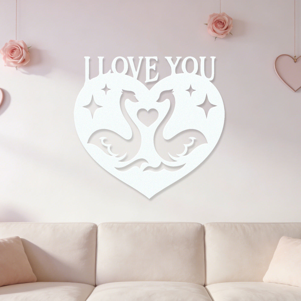 I Love You Swan Heart Metal Wall Art