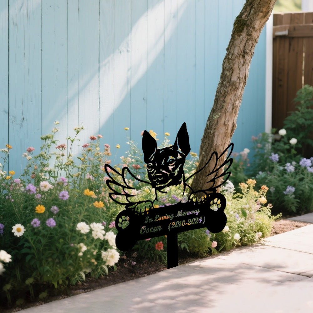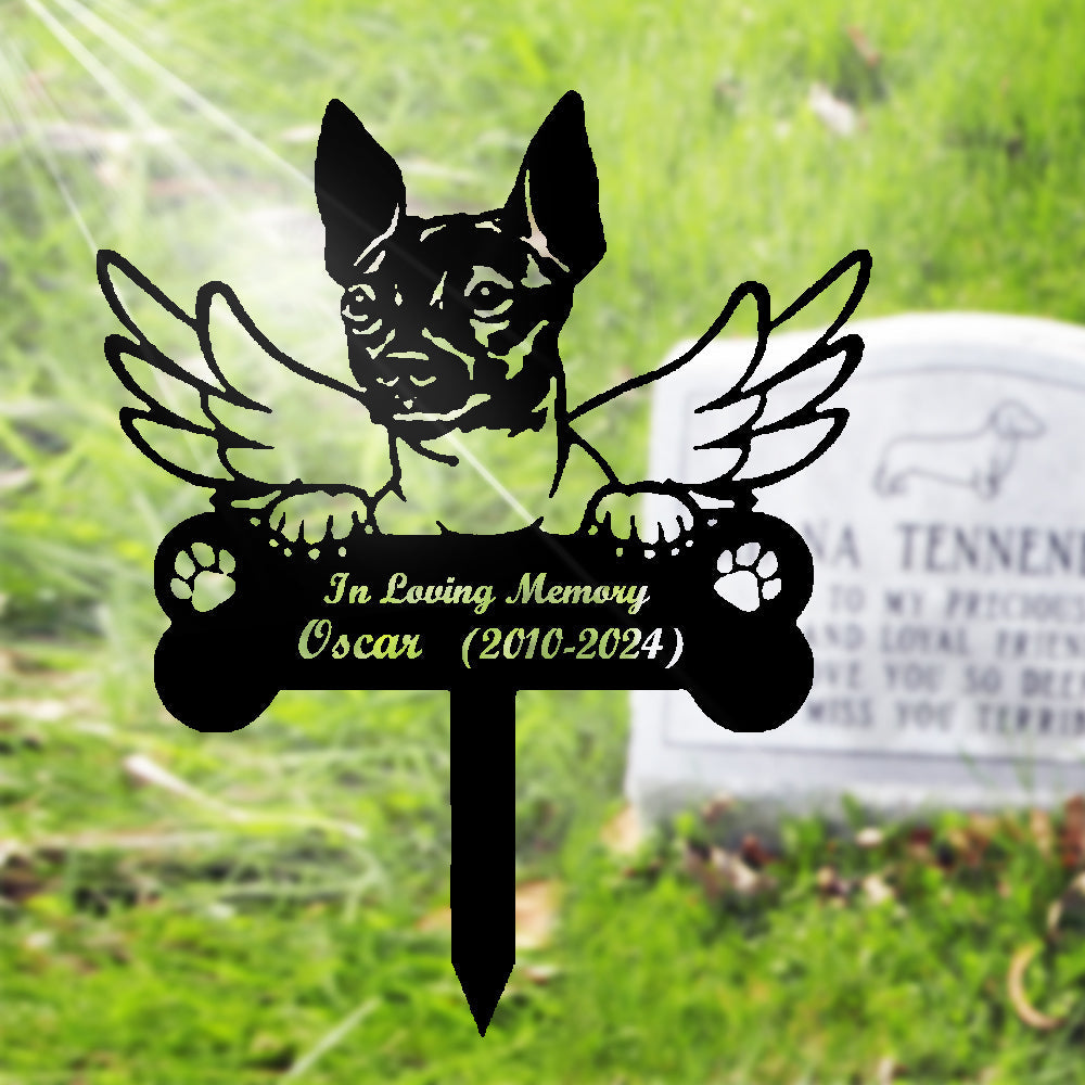 American Hairless Terrier Dog Custom Memorial Stake with Wings