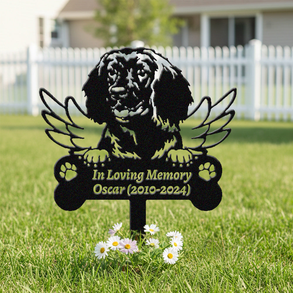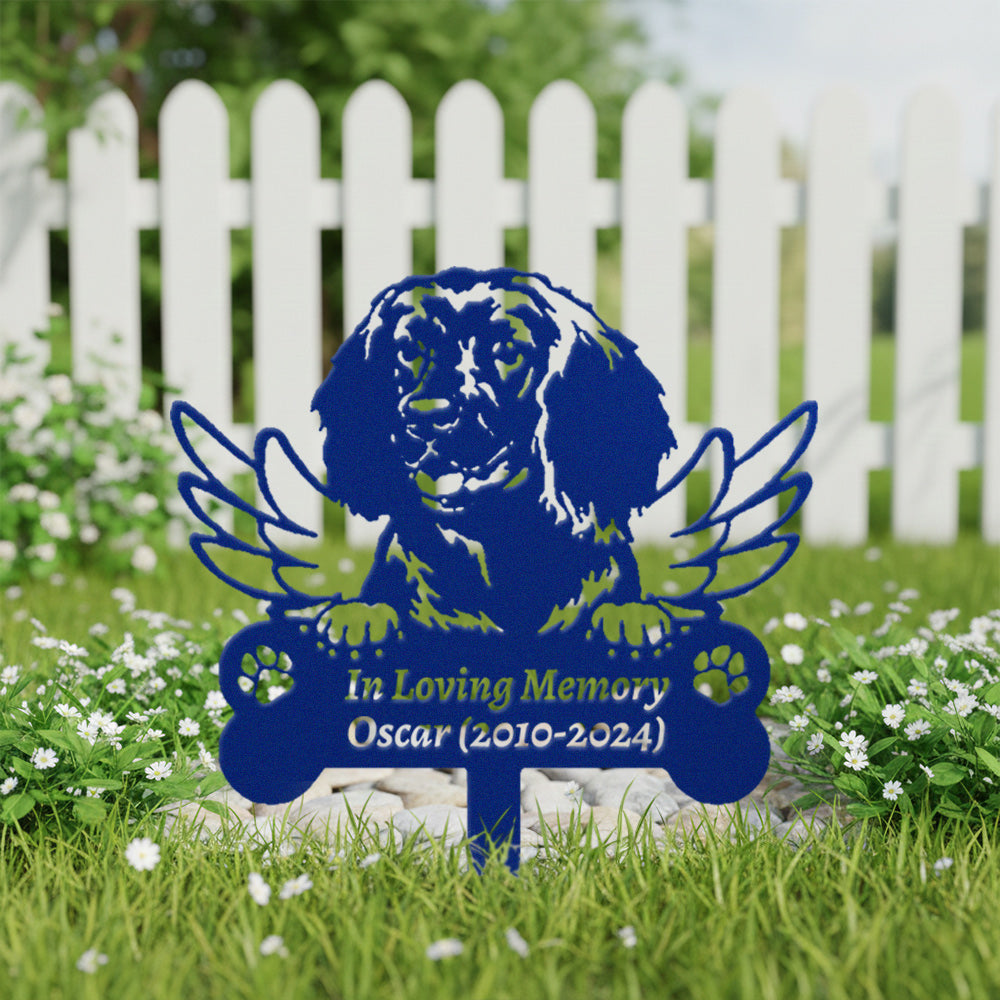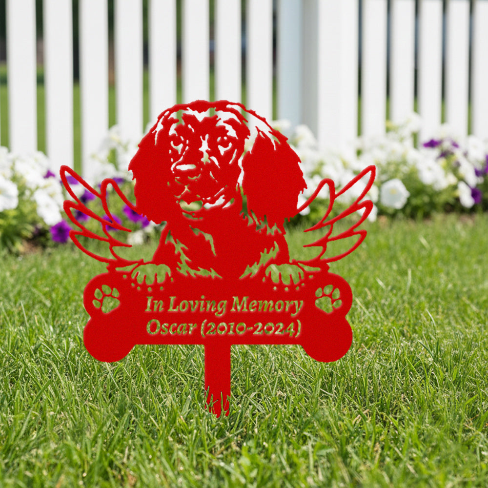 American Water Spaniel Dog Custom Memorial Stake with Wings