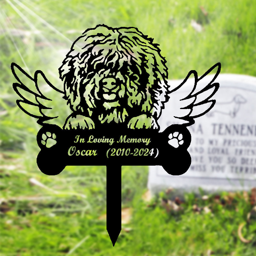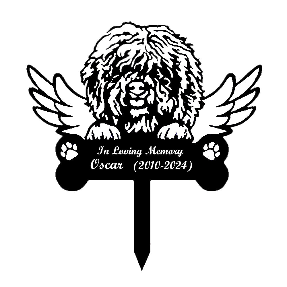 Barbet Dog Custom Memorial Stake with Wings