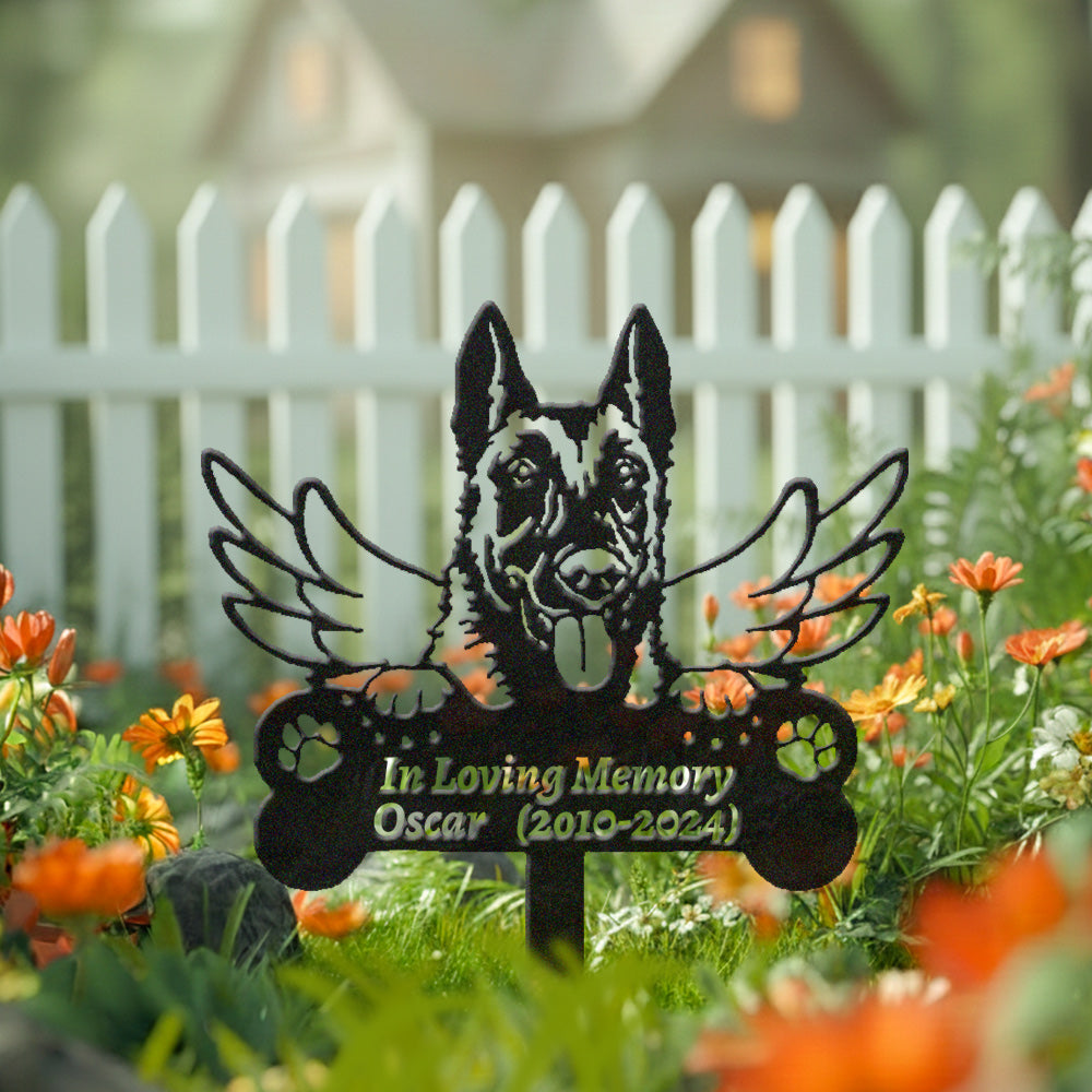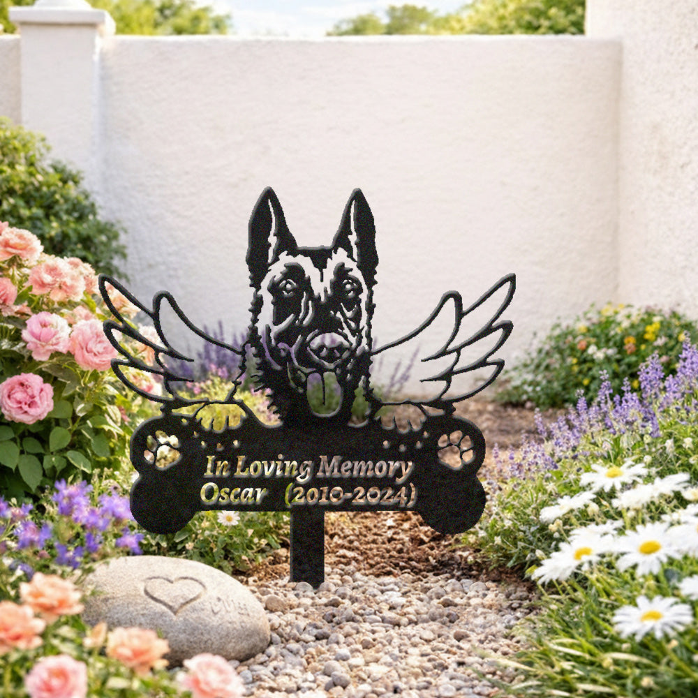 Belgian Malinois Dog Custom Memorial Stake with Wings