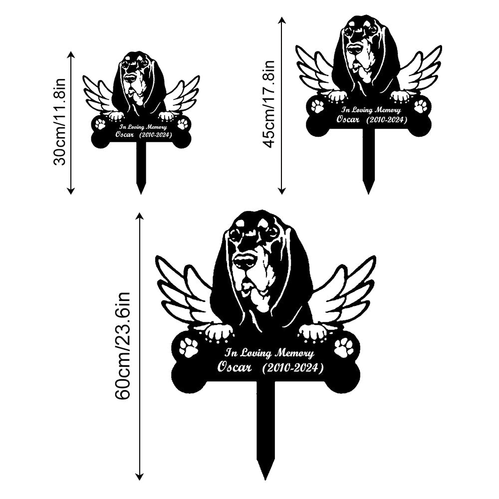 Black and Tan Coonhound Dog Custom Memorial Stake with Wings