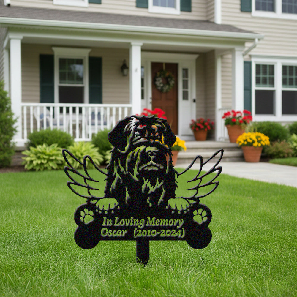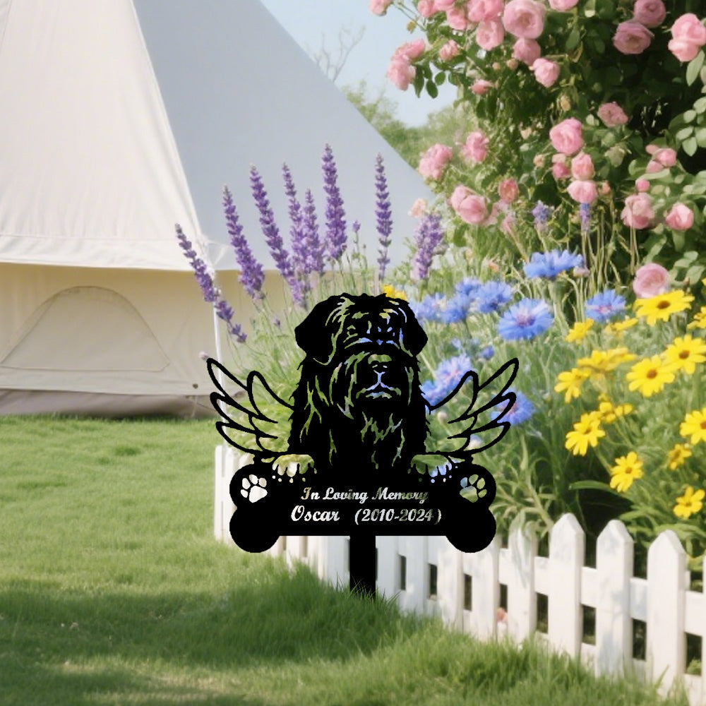 Black Russian Terrier Dog Custom Memorial Stake with Wings