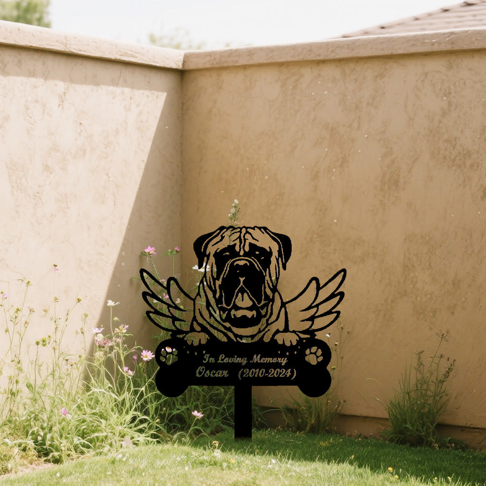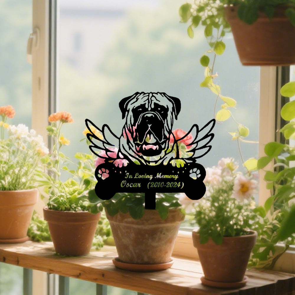 Bullmastiff Dog Custom Memorial Stake with Wings