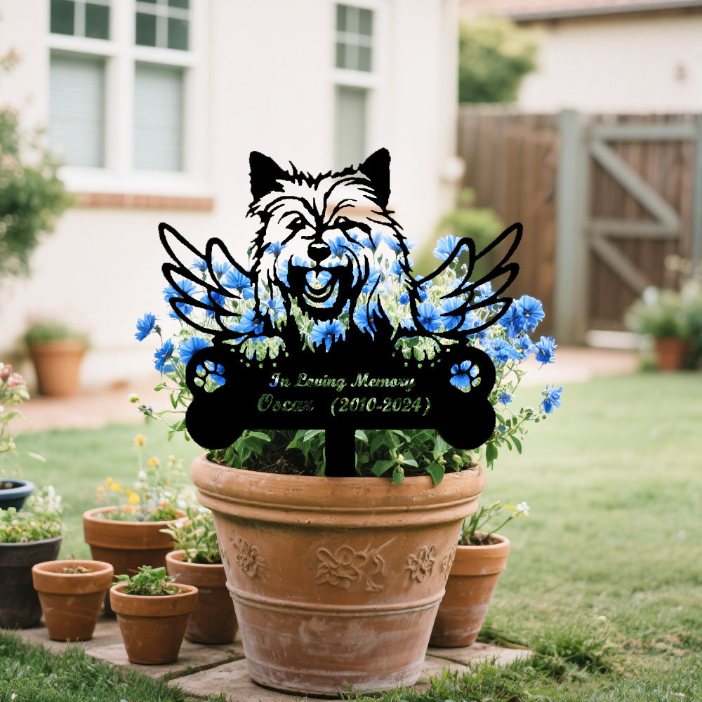 Cairn Terrier Dog Custom Memorial Stake with Wings