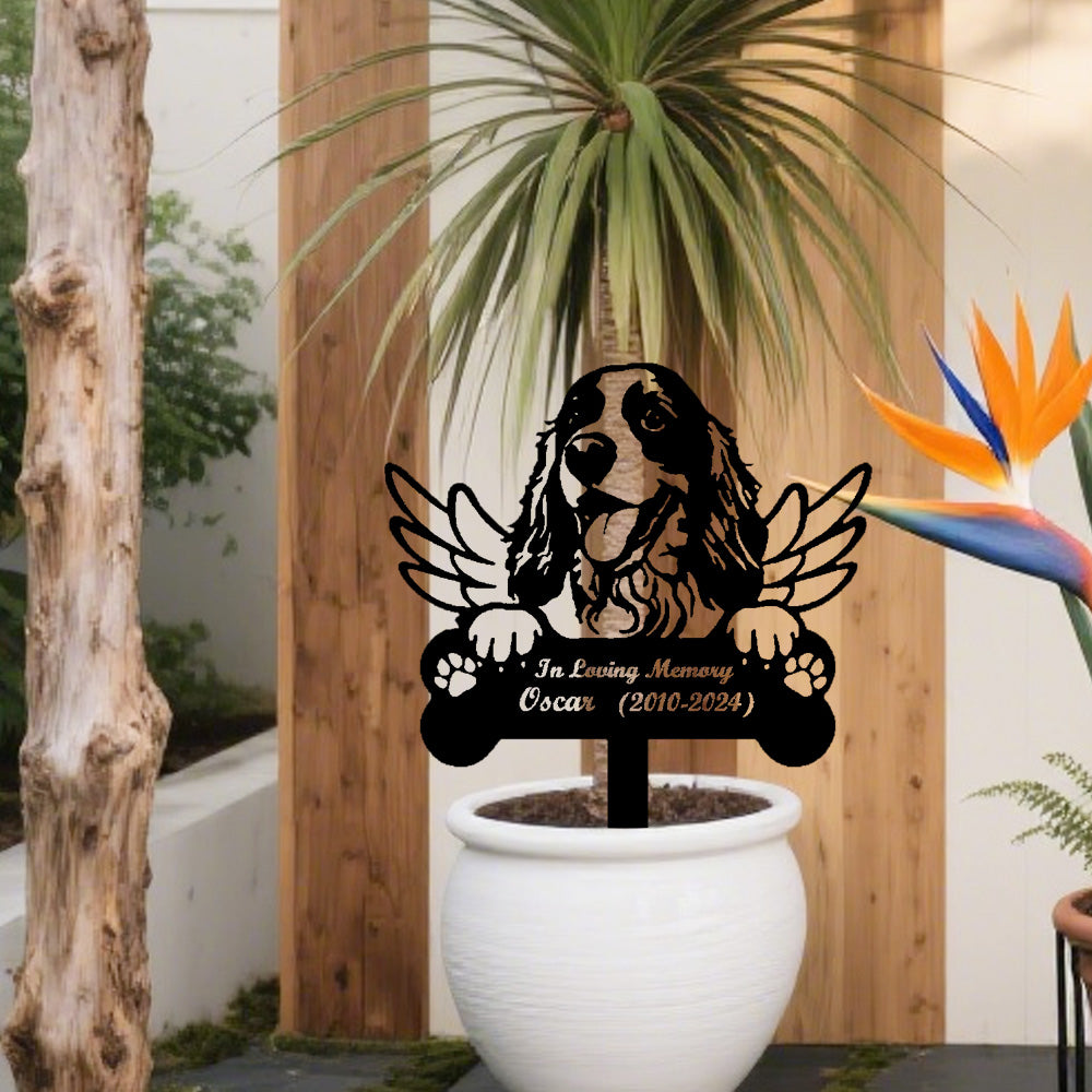 Cocker Spaniel Dog Custom Memorial Stake with Wings