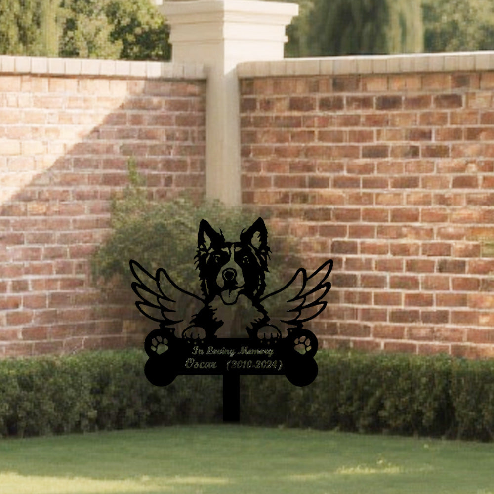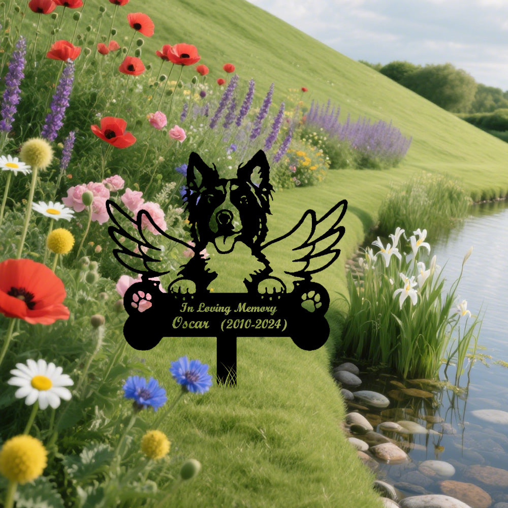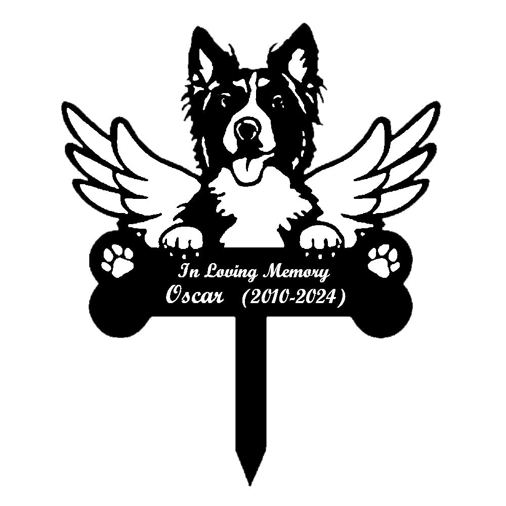 Collie Dog Custom Memorial Stake with Wings