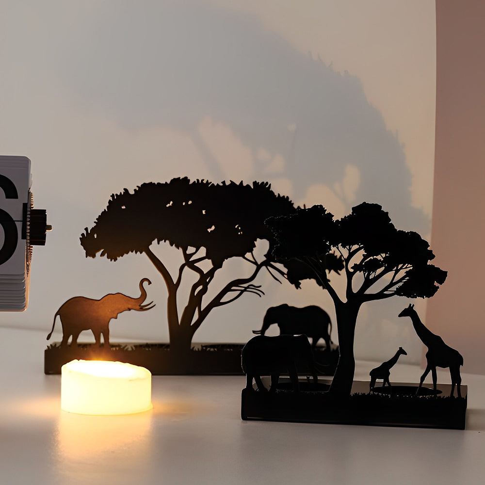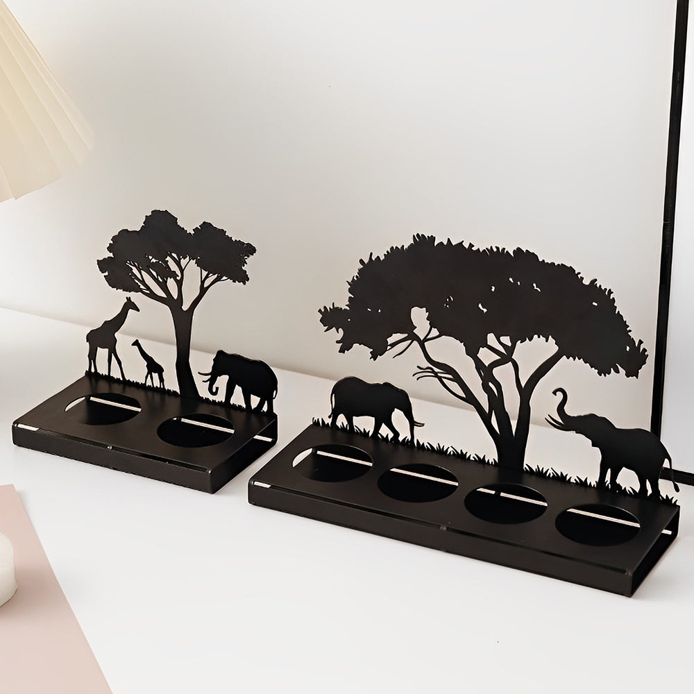 Elephant and Giraffes Candle Holder Metal Decorative