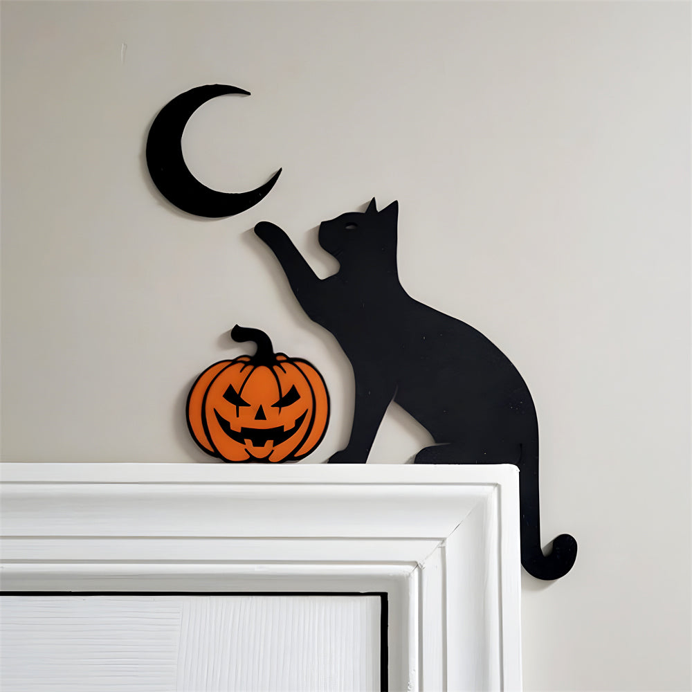 Halloween Black Cat and Moon Metal Door Corner Sign