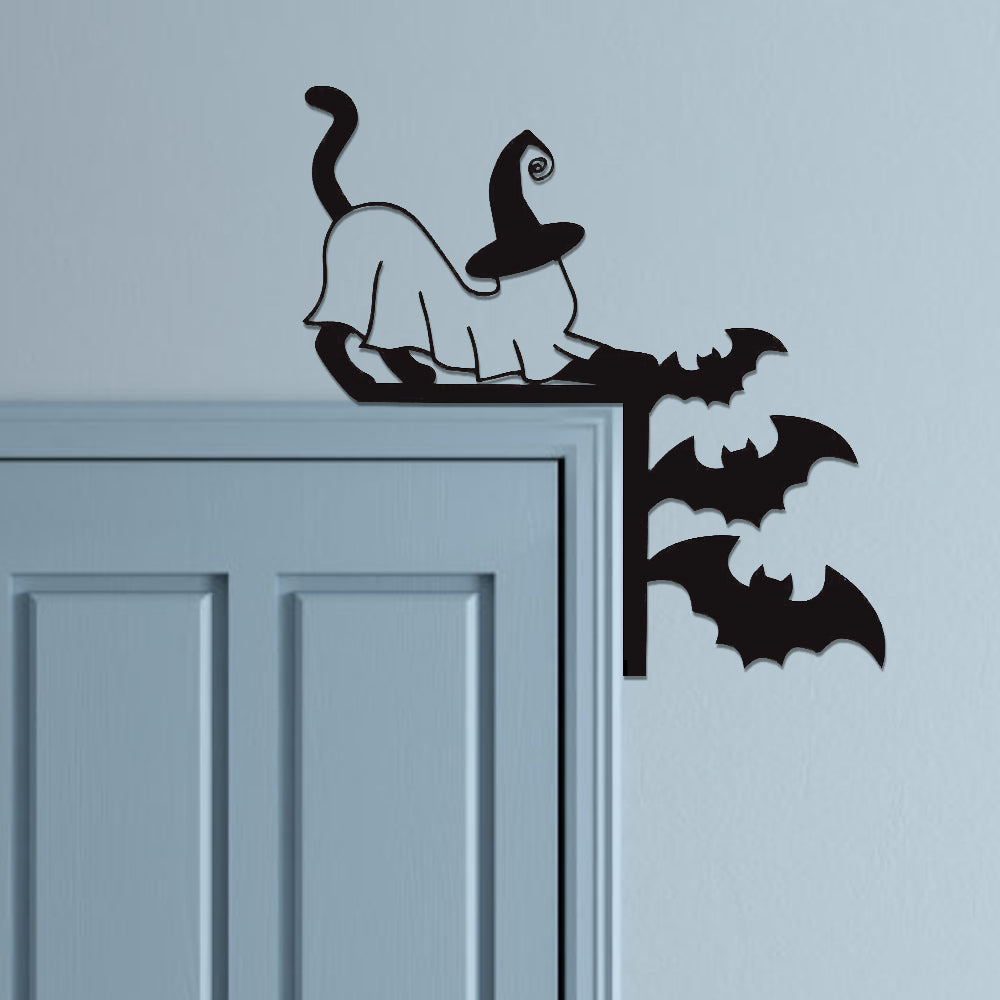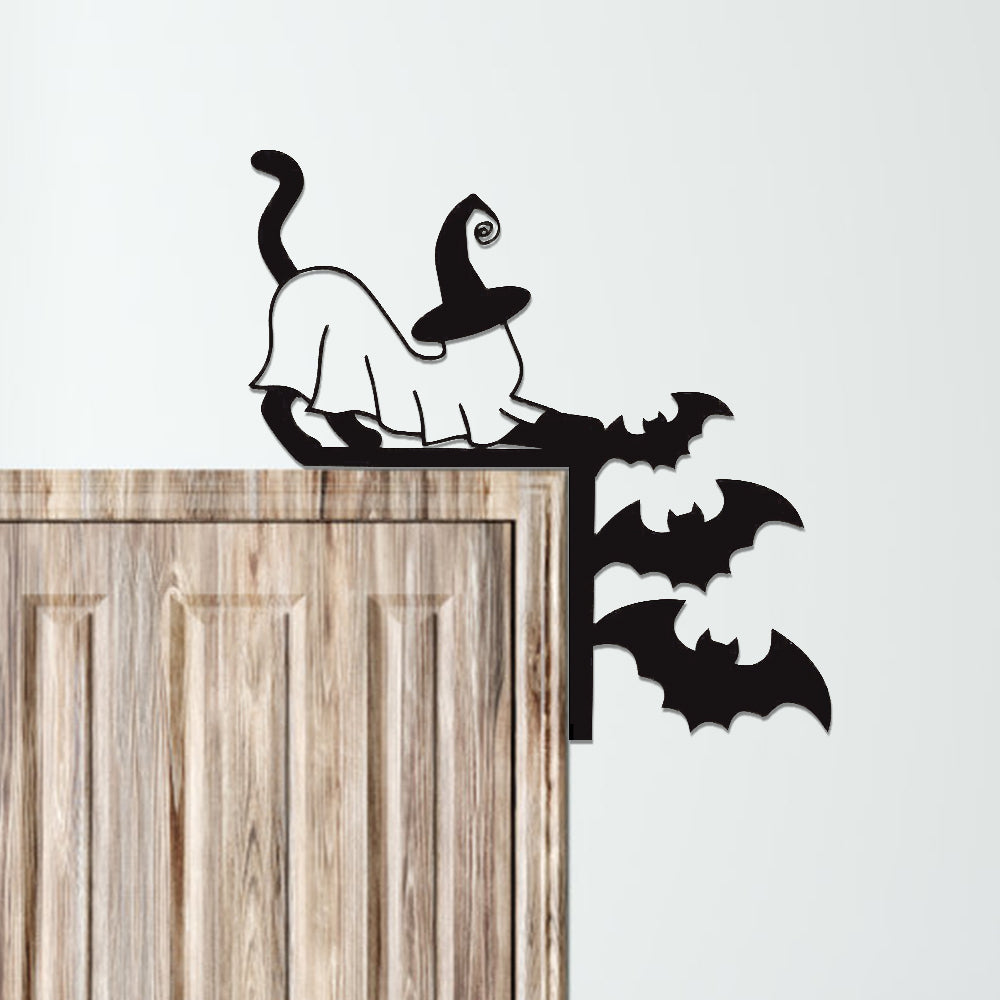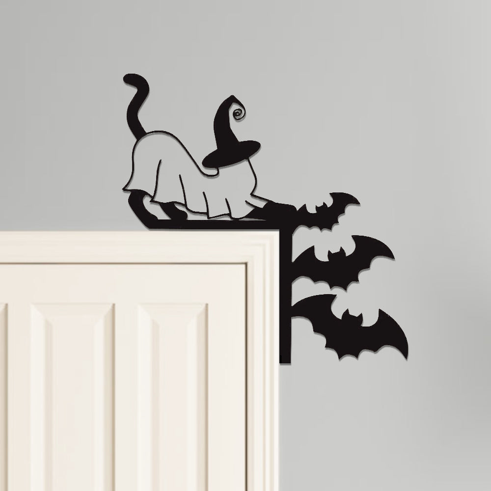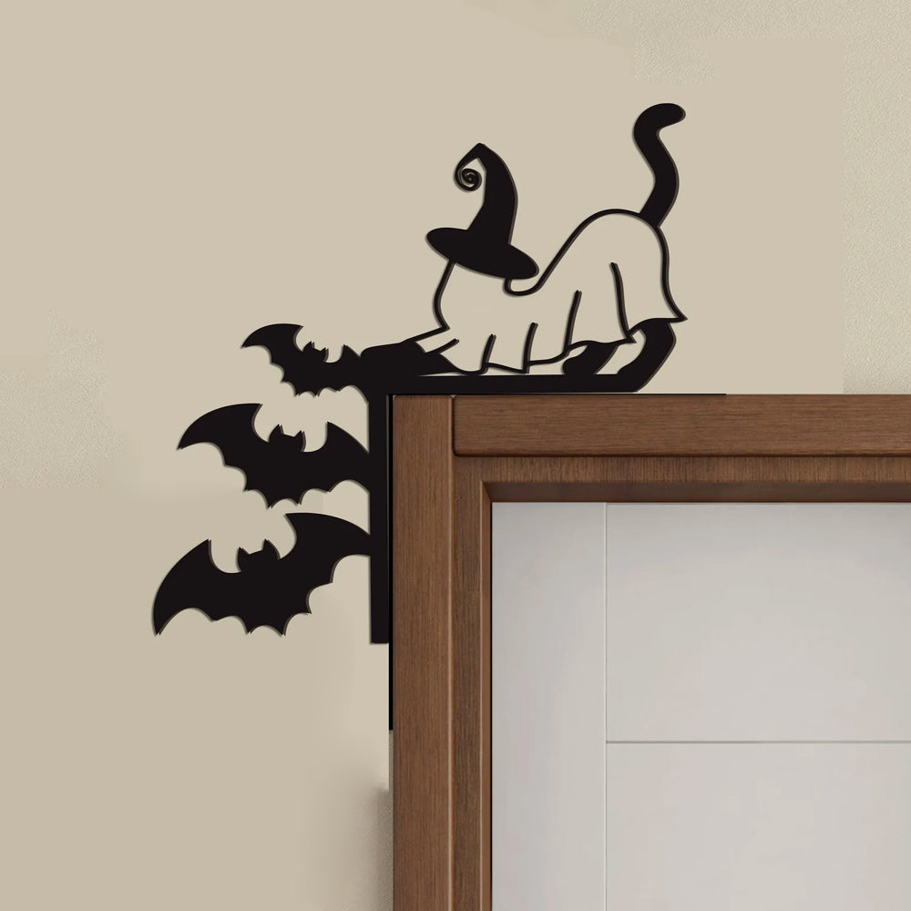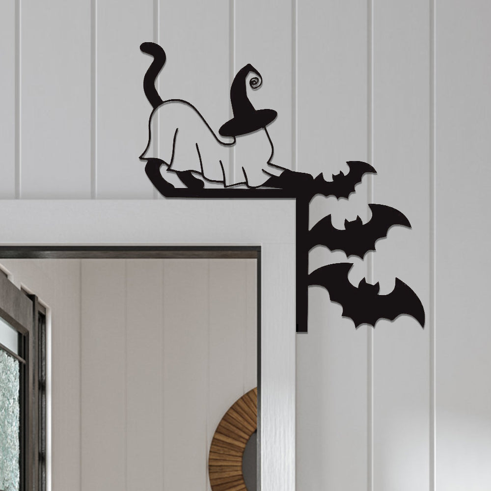 Halloween Cute Cat and Bat Metal Door Corner Sign